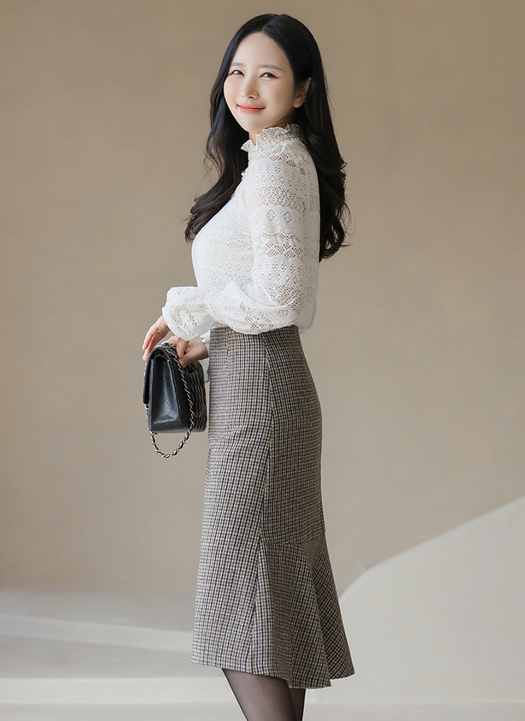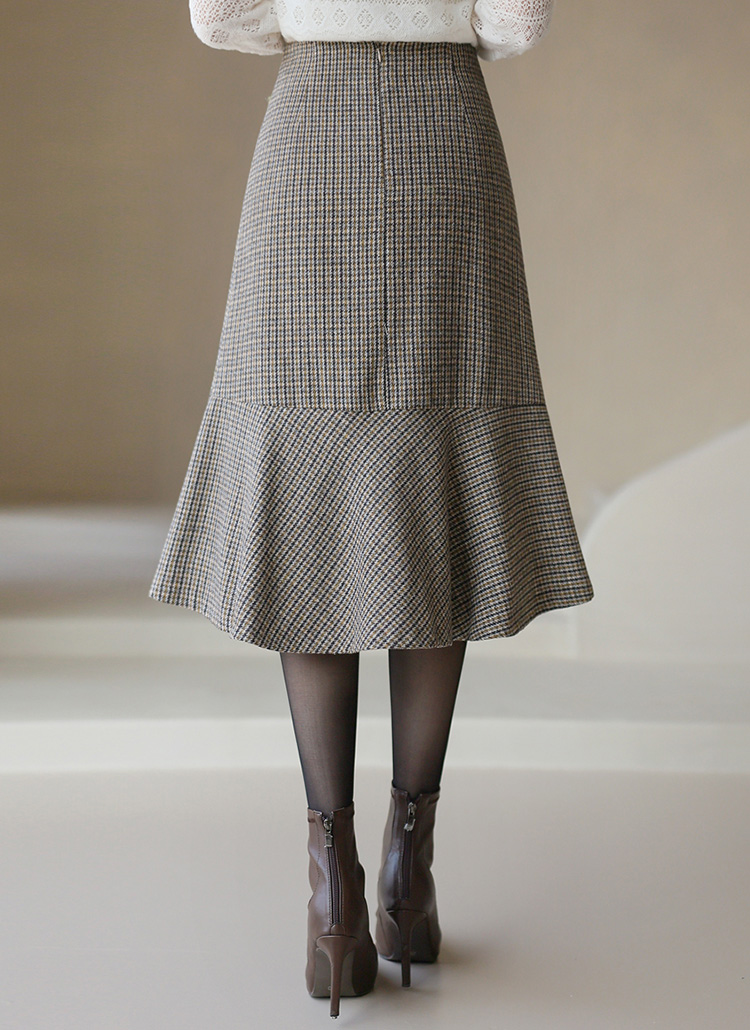 [LouisAngel] チェック柄アシメバックフレアミディスカート sk37221