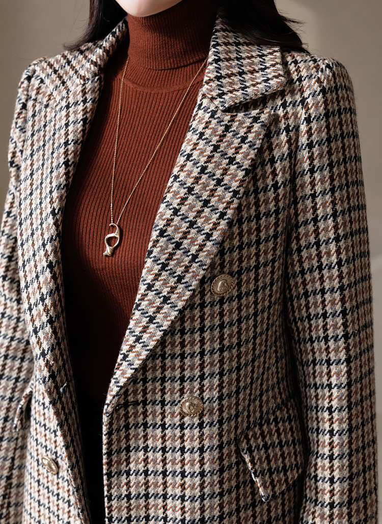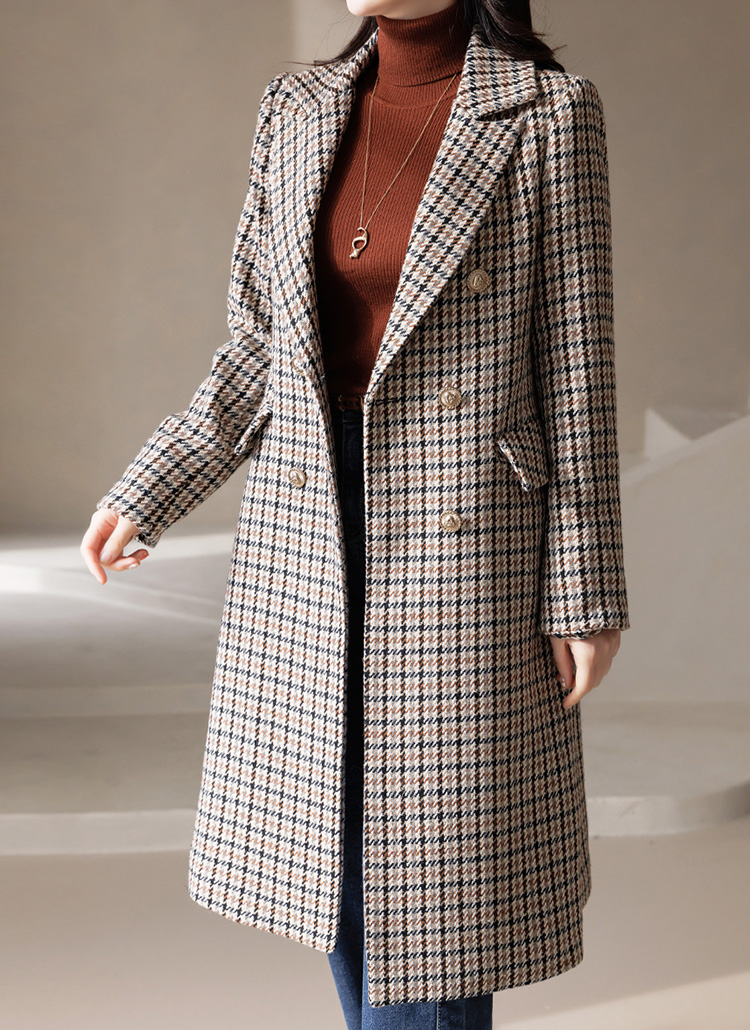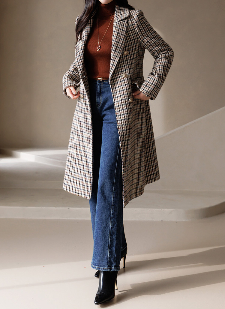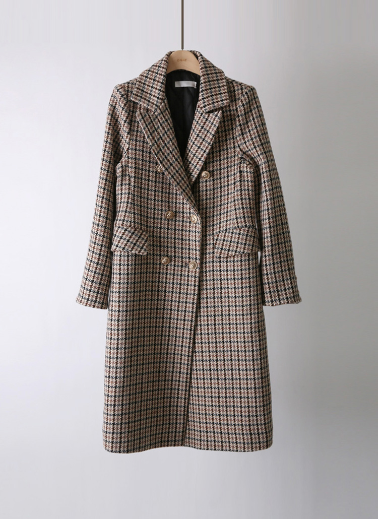 裏キルティング千鳥柄ダブルボタンウールコート ct37425