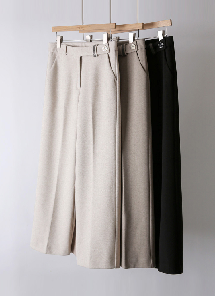 비즈 라인 포인트가 돋보이는 랩 웨이스트 슬림 일자 슬랙스에요 :)