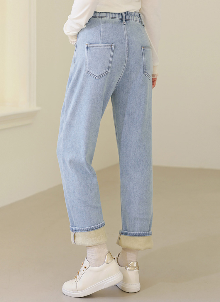 【ウエスト調節可能】バイカラー裏起毛ストレッチデニムパンツ pt37518