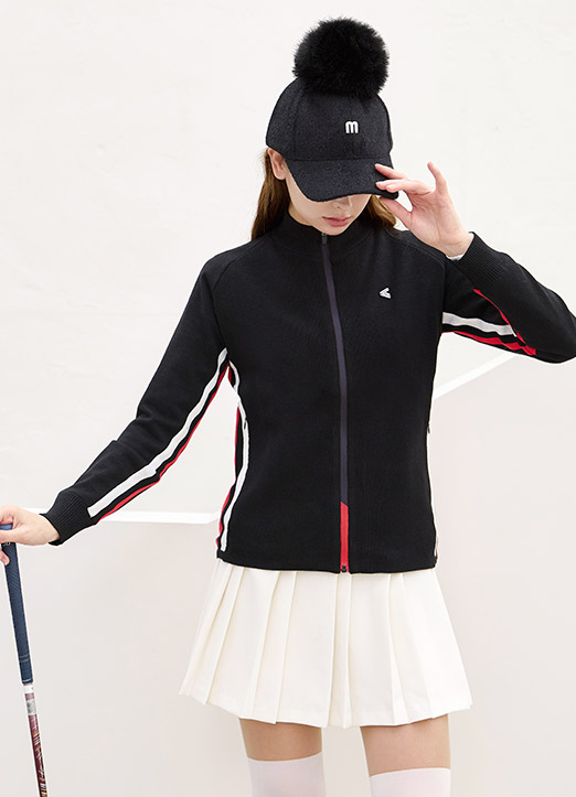 [QoG] ハイネック配色ニットジップアップ jp37542