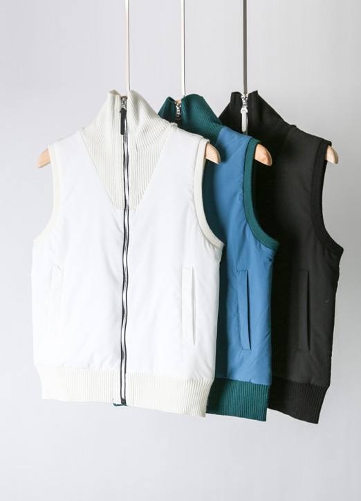 [QoG] バイカラーラインハイネックニットジップベスト vt37563