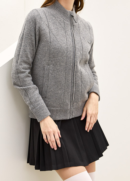 【防風ニット】[QoG] ラムウールハイネックニットジップアップ jp37566