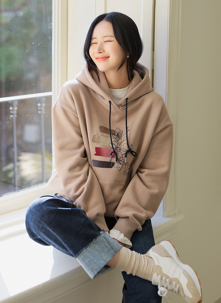[LouisAngel] 裏起毛ドローイングフロッキープリントフーディースウェット ts37587