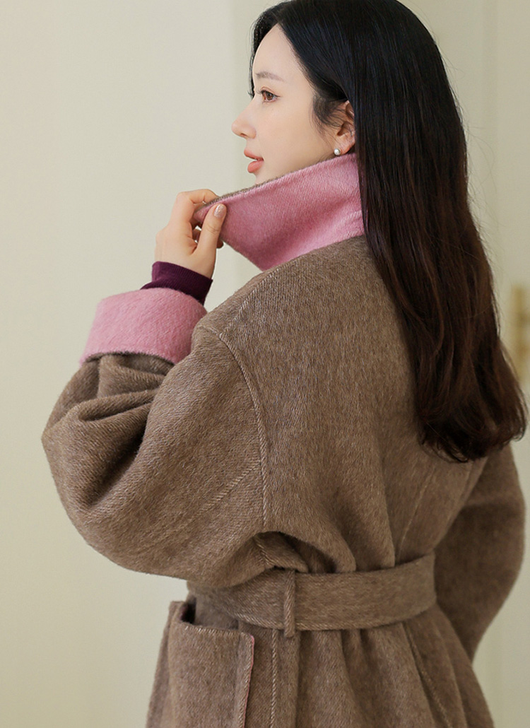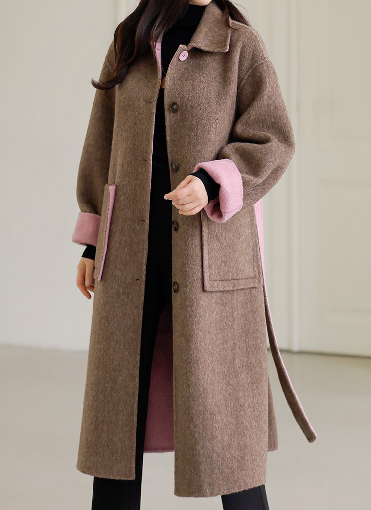 ラムウールシルクブレンド配色ステンカラーロングコート ct37650