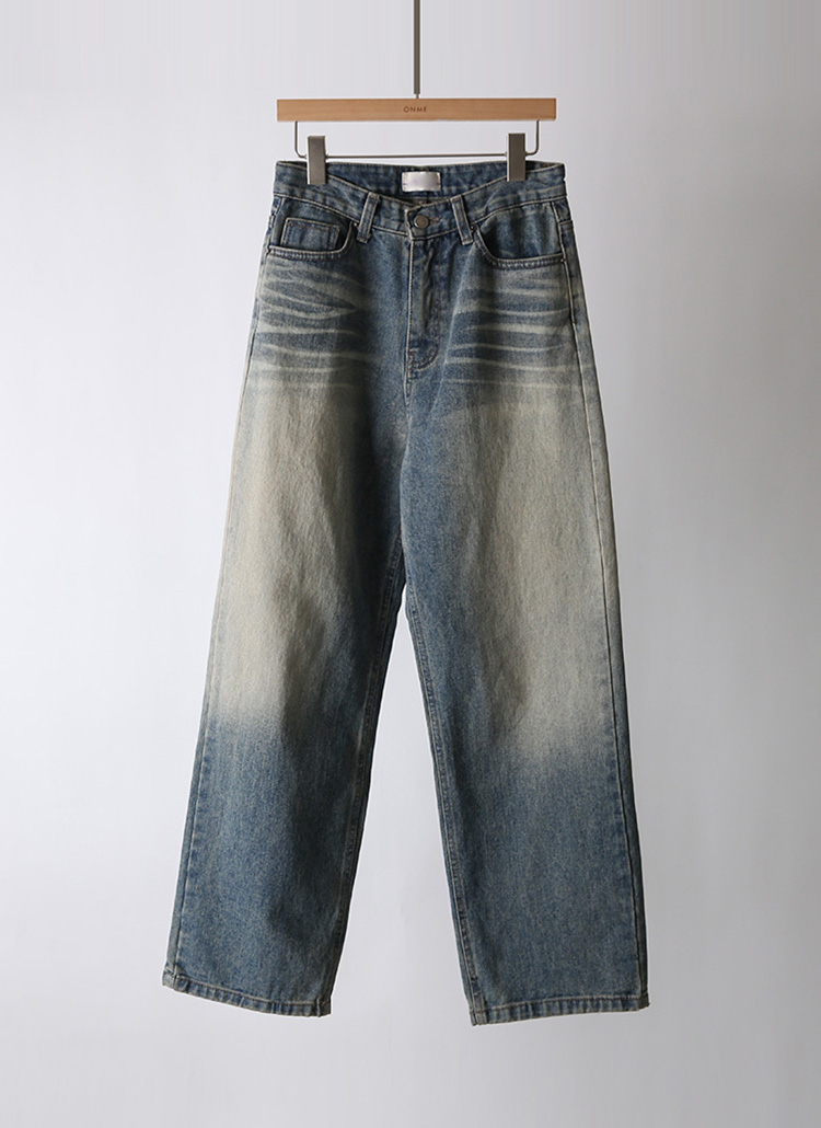 [THE ONME] 裏起毛ヴィンテージウォッシュワイドデニムパンツ pt37770