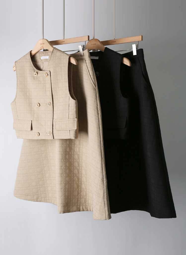 【2点セット】ダブル釦ダイヤキルティングベスト&フレアスカート SET37800