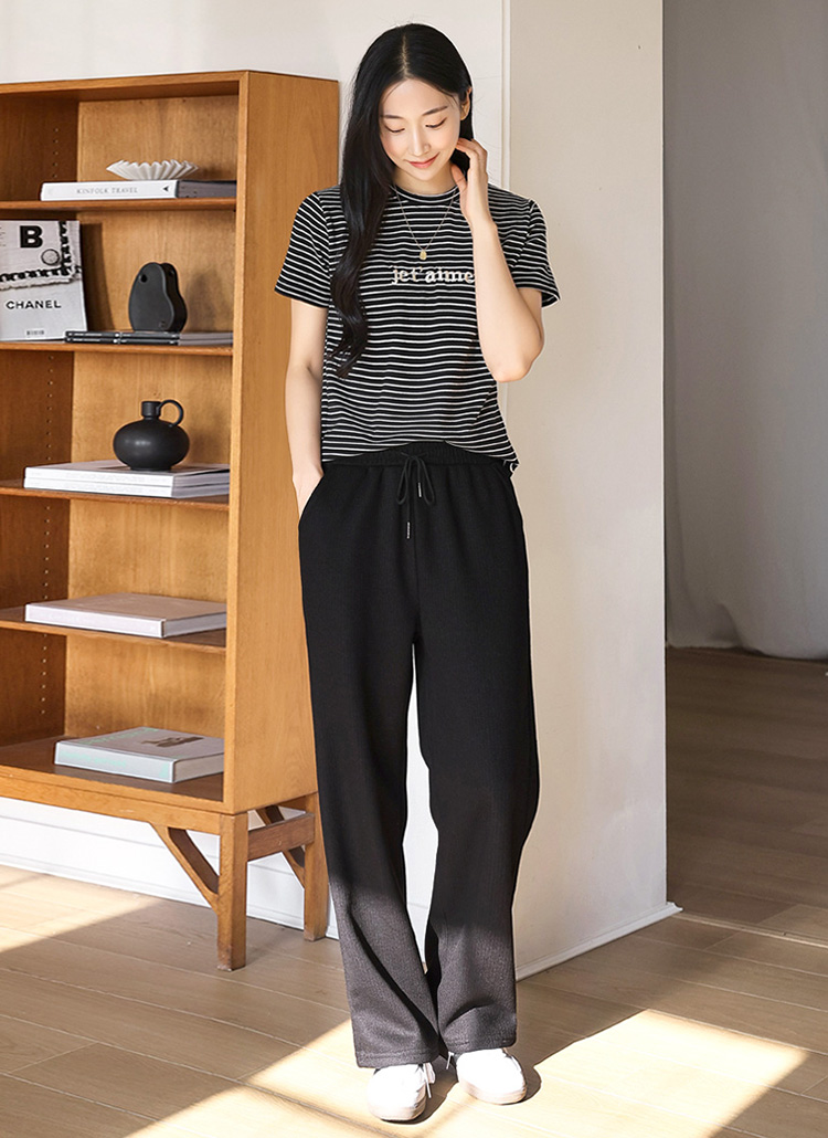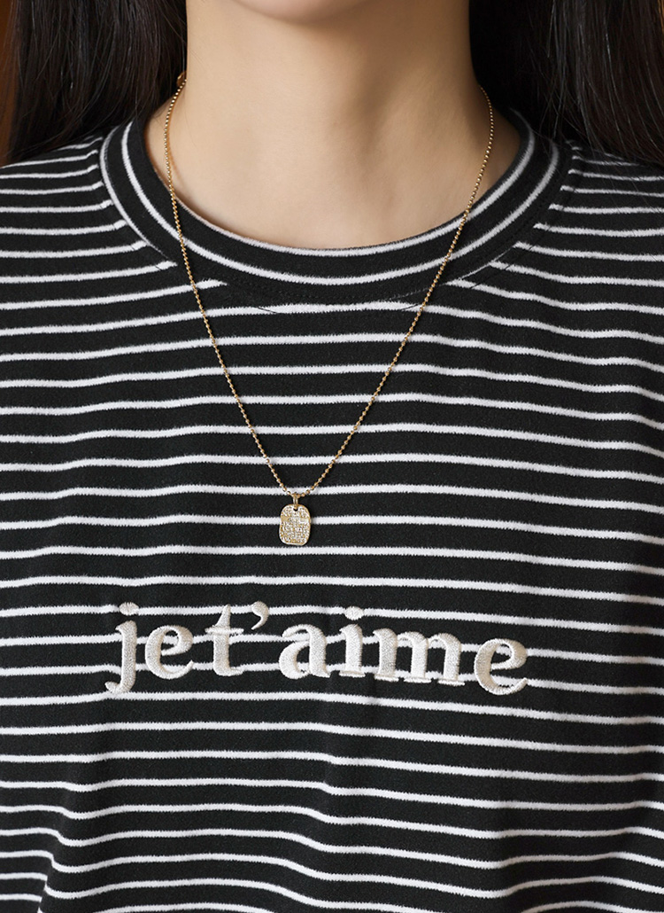 스트라이프 패턴에 감성적인 레터링 자수로 포인트를 준