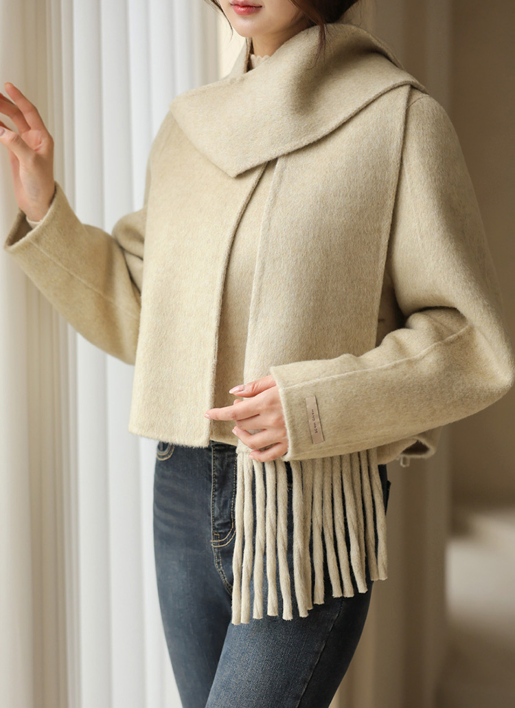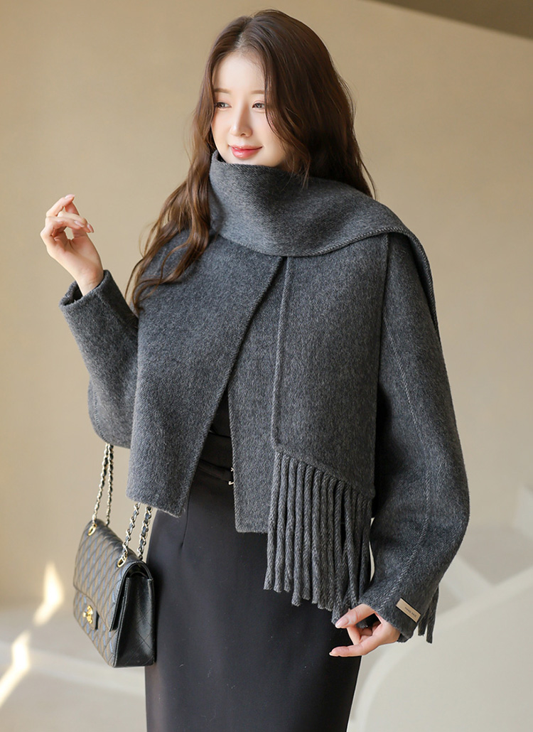 【2点セット】ウール100 マフラーSETノーカラー ハンドメイドコート jk37884