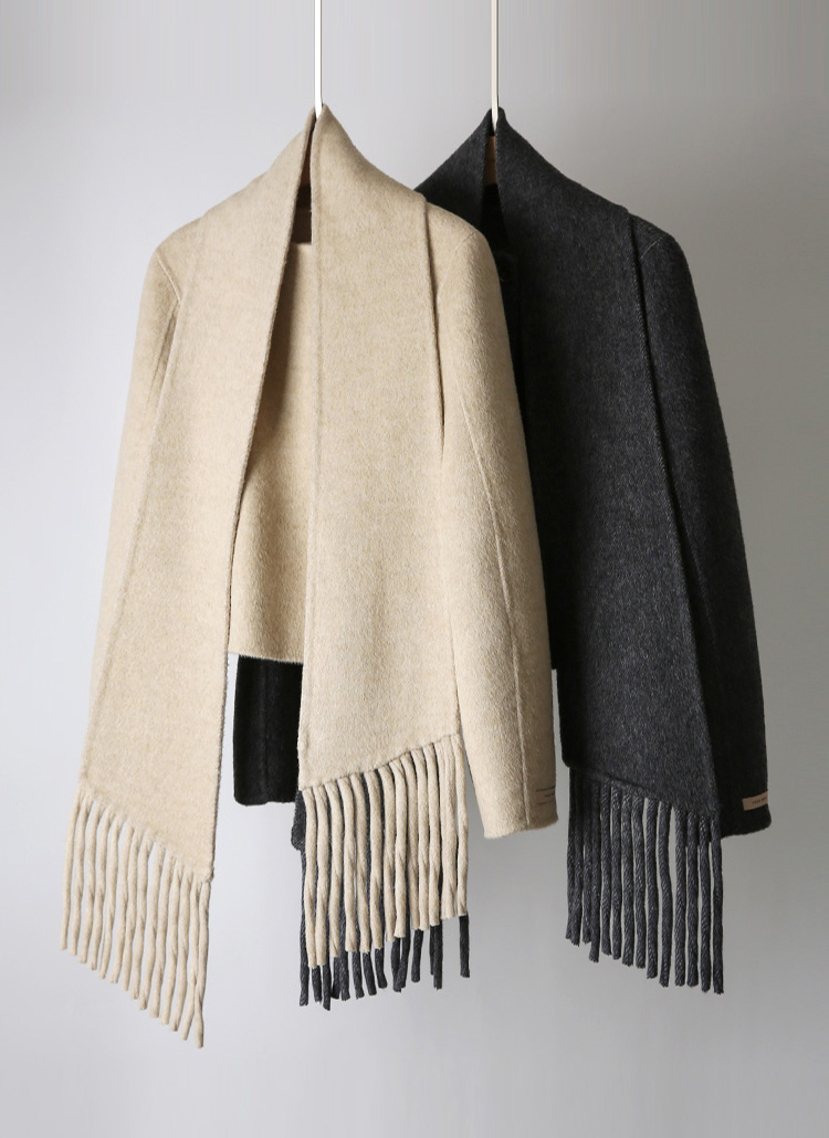 【2点セット】ウール100 マフラーSETノーカラー ハンドメイドコート jk37884