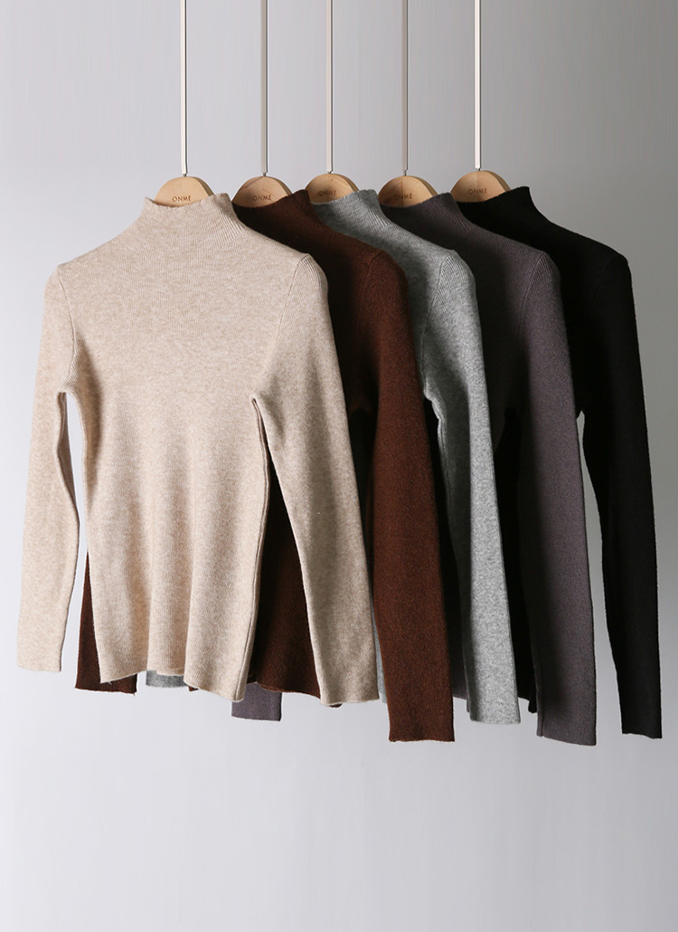 【5色展開】モックネックスリムリブニットトップス nt38091