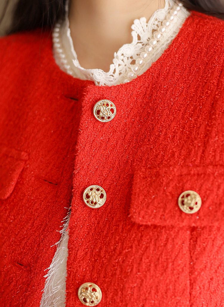 [LouisAngel] ゴールドボタンラメツイードノーカラージャケット jk38133