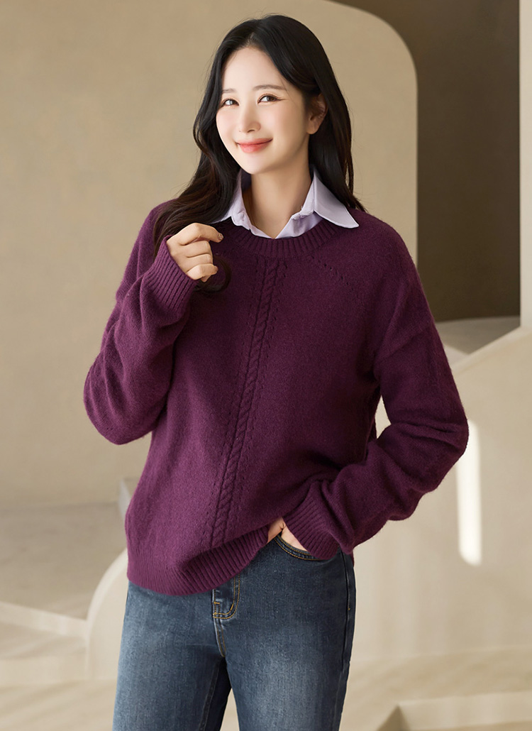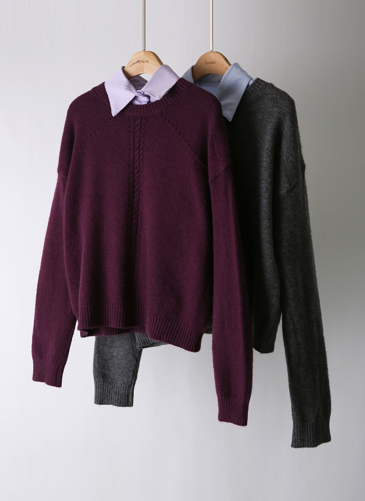 꽈배기 라인이 돋보이는 루즈핏 니트와