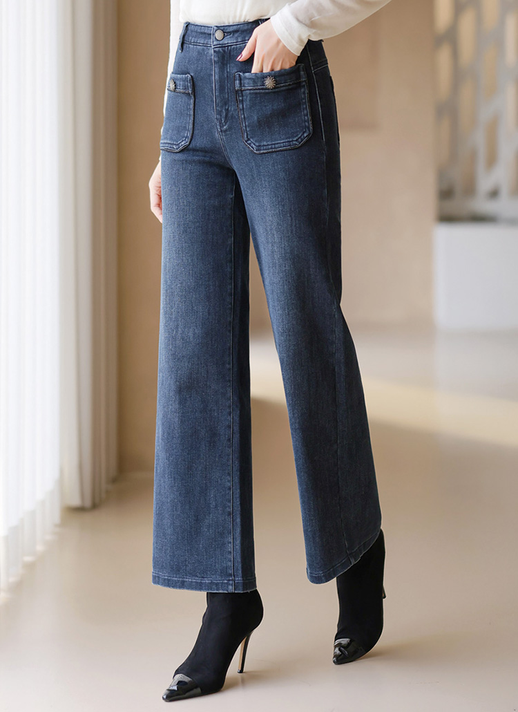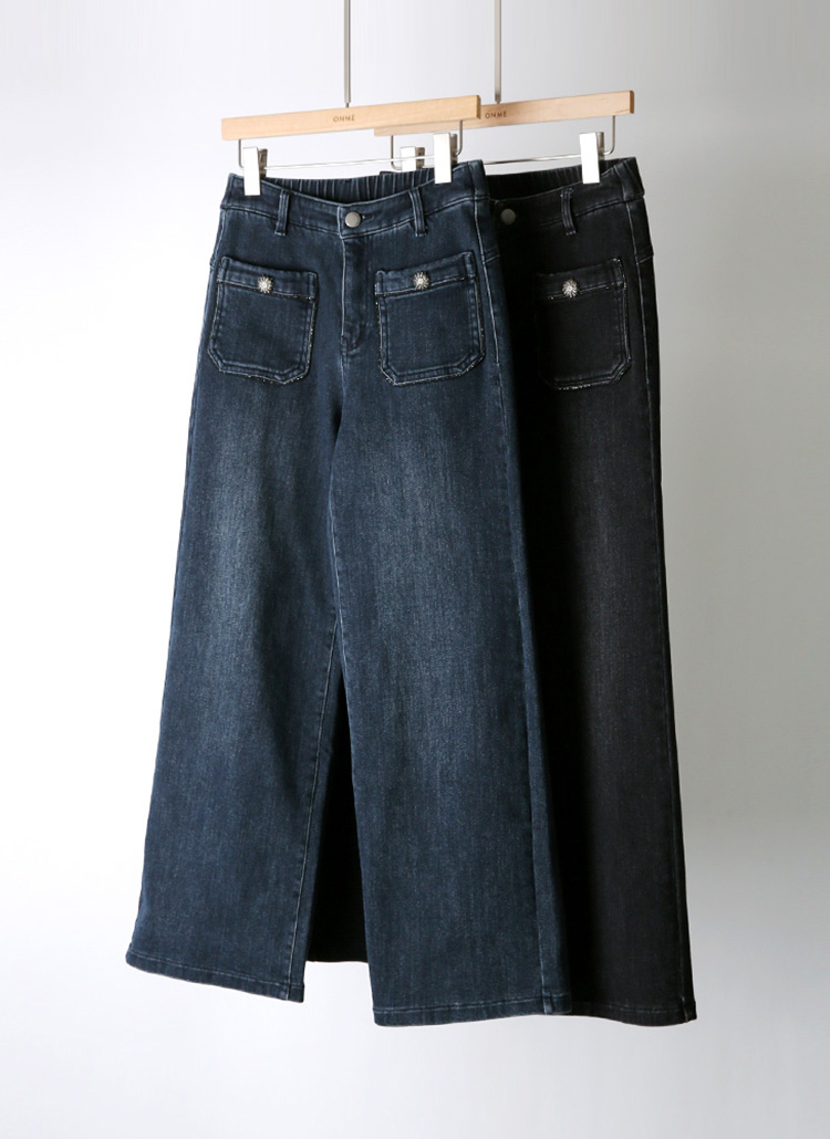 부드럽고 따뜻한 속 기모 세미 와이드 데님 팬츠에요 :)
