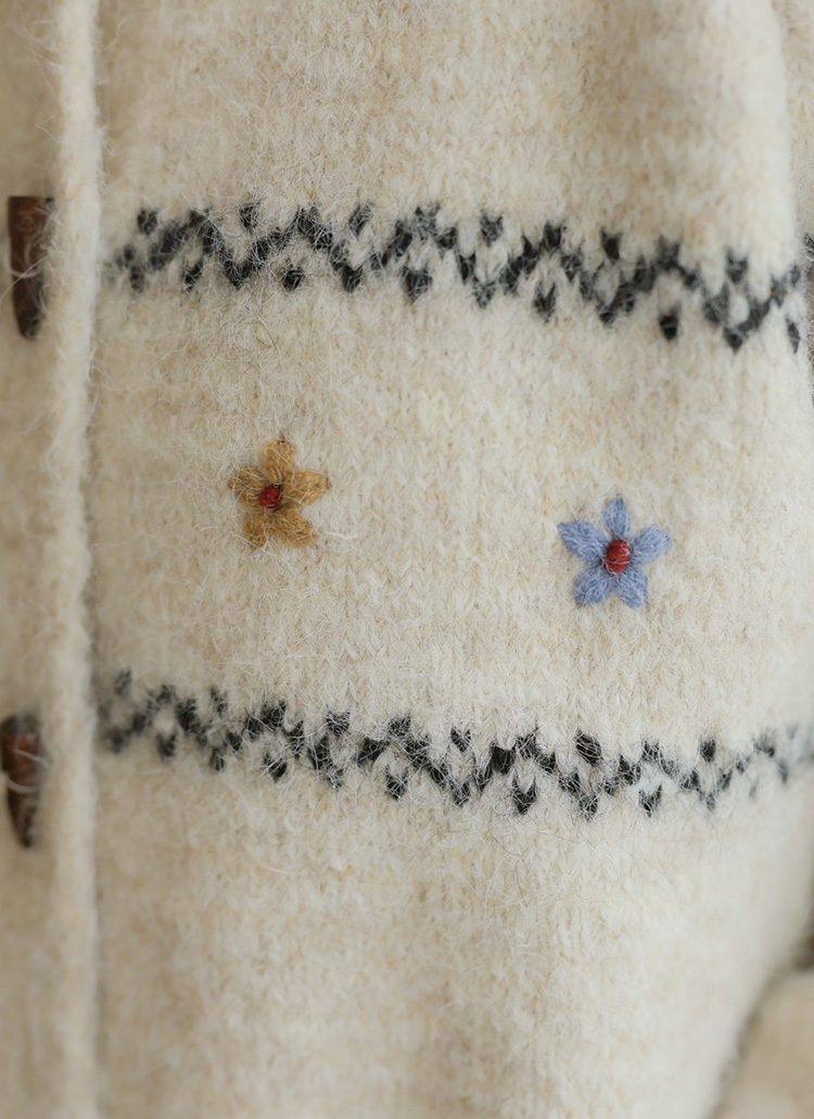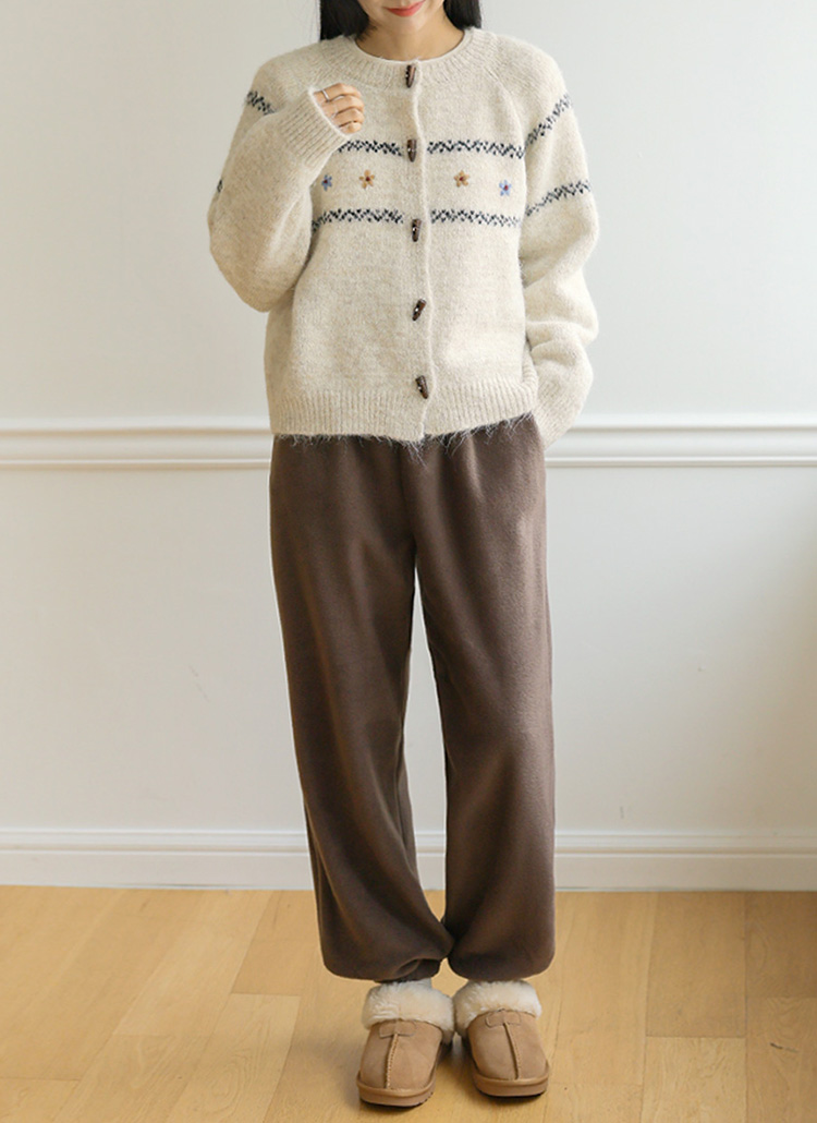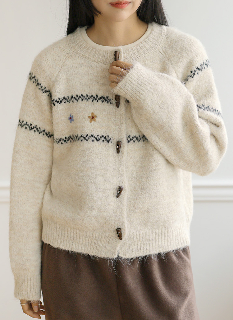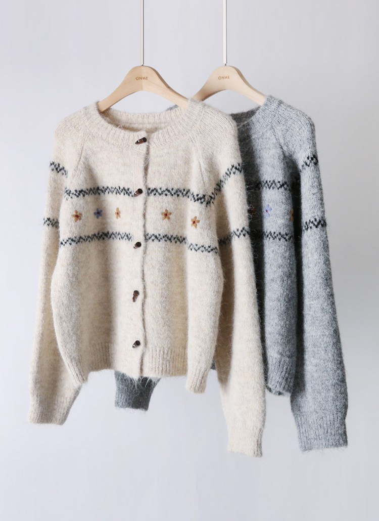 플라워 자수가 가디건에 사랑스러운 포인트를 더해주며,