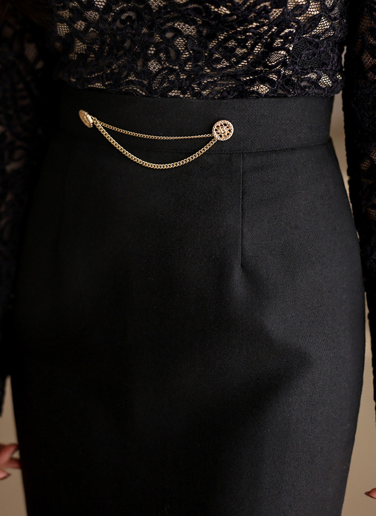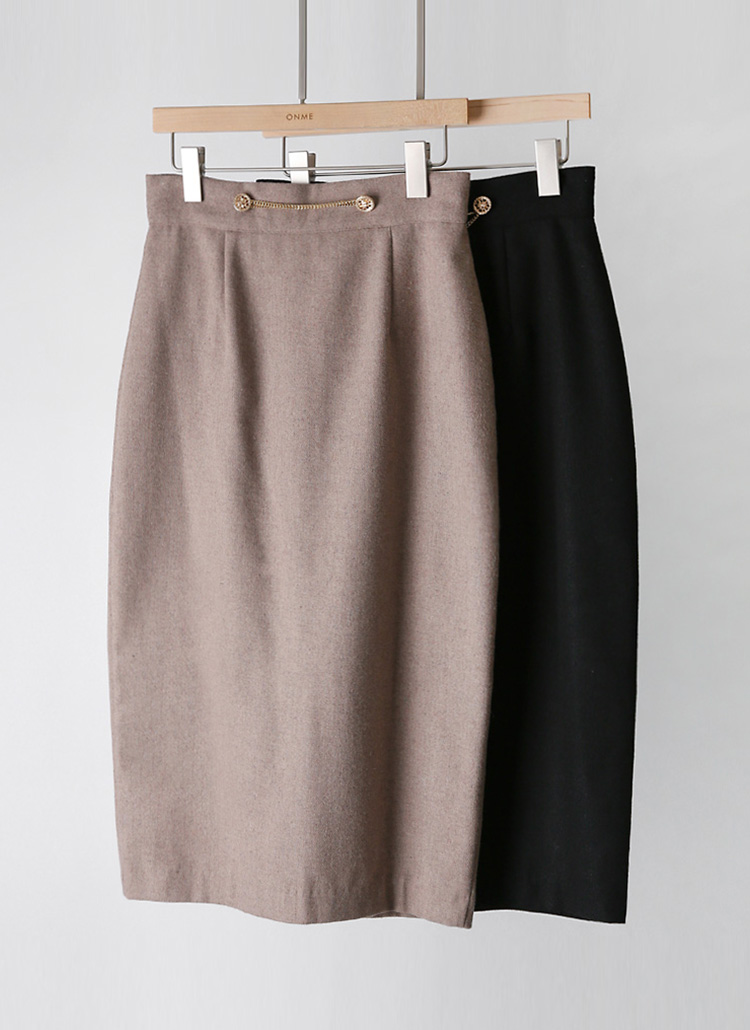 ウールブレンド ゴールドチェーン付き ペンシルスカート sk38331