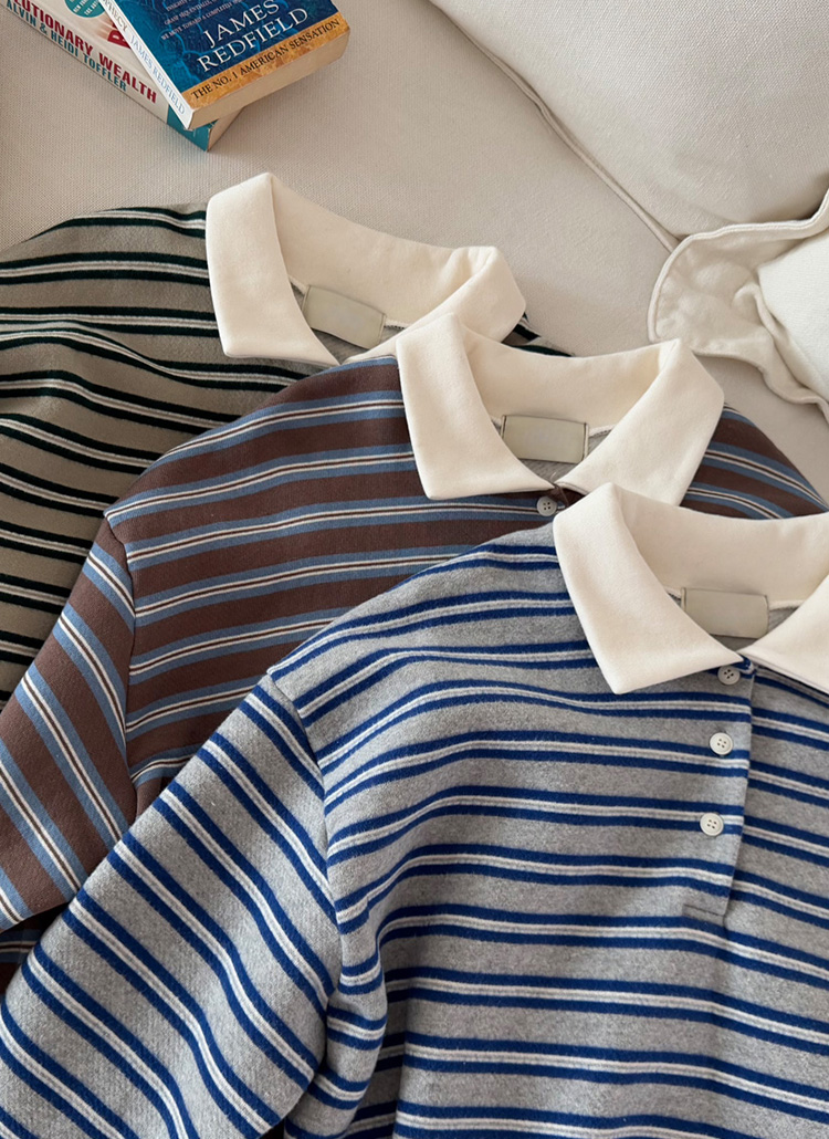 [THE ONME] ボーダーポロカラーTシャツ ts38370