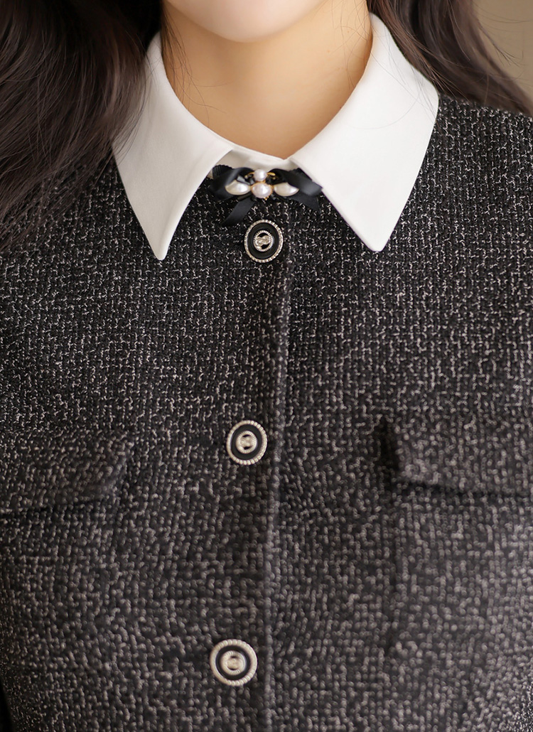 取り外し可能なカラー付き スリムツイードジャケット jk38427