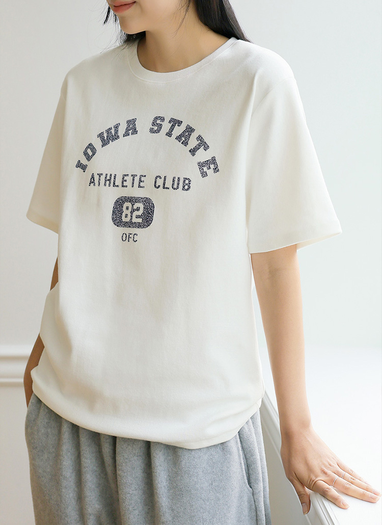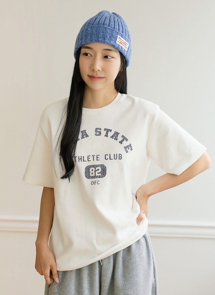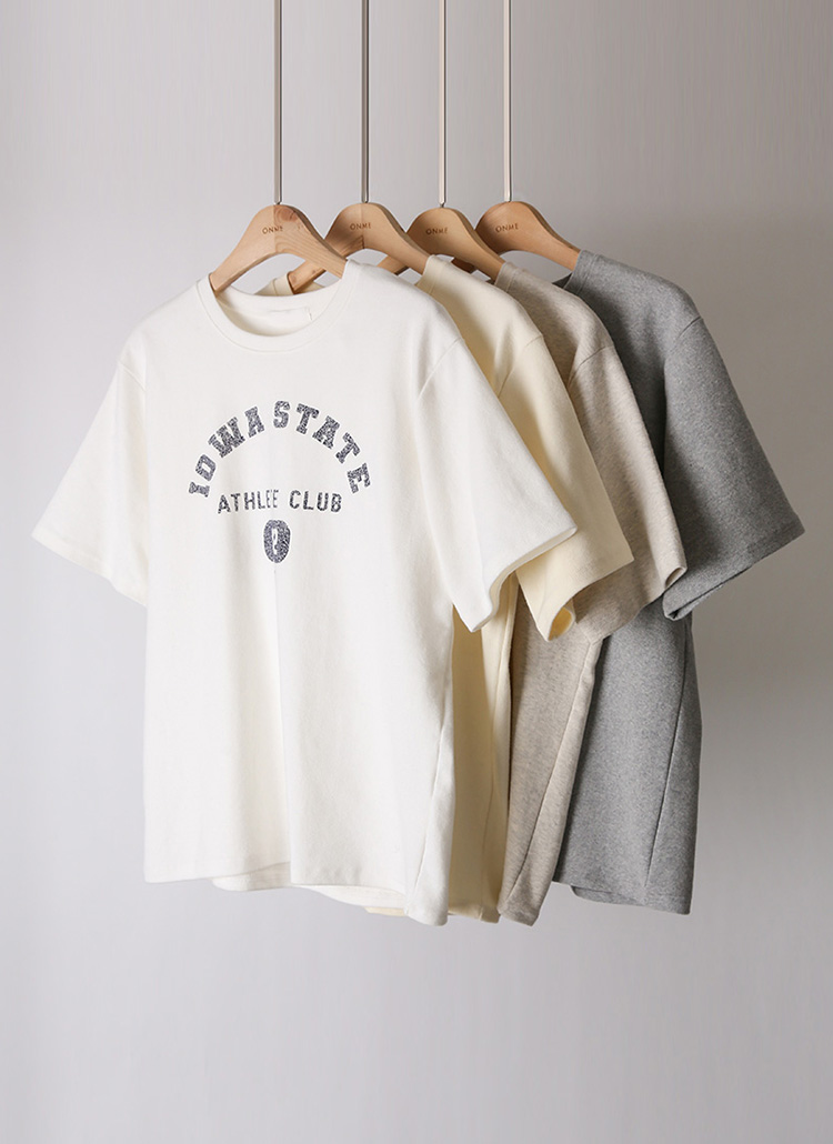 빈티지한 레터링이 돋보이는 겉피치기모 소재의 캐주얼한 티셔츠에요 :)