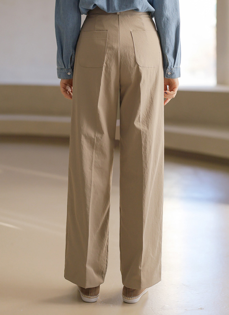 깔끔하게 떨어지는 일자 핏에 원턱 디테일로