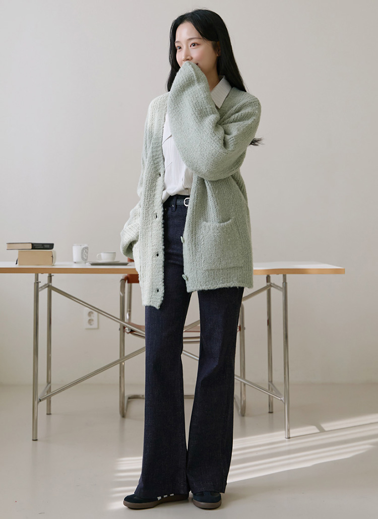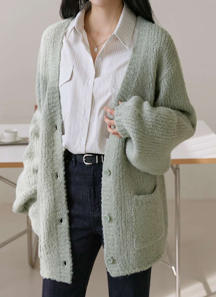 딥브이넥 루즈핏 니트 가디건이에요 :)