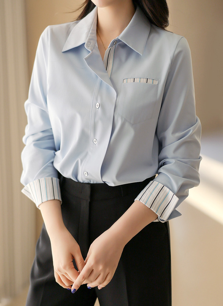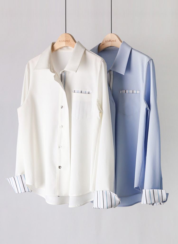 [LouisAngel] ストライプ切り替えシャツブラウス bl38556