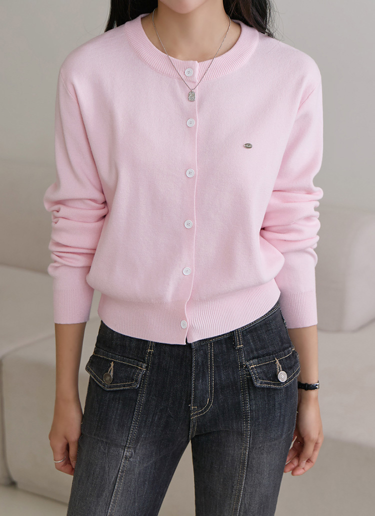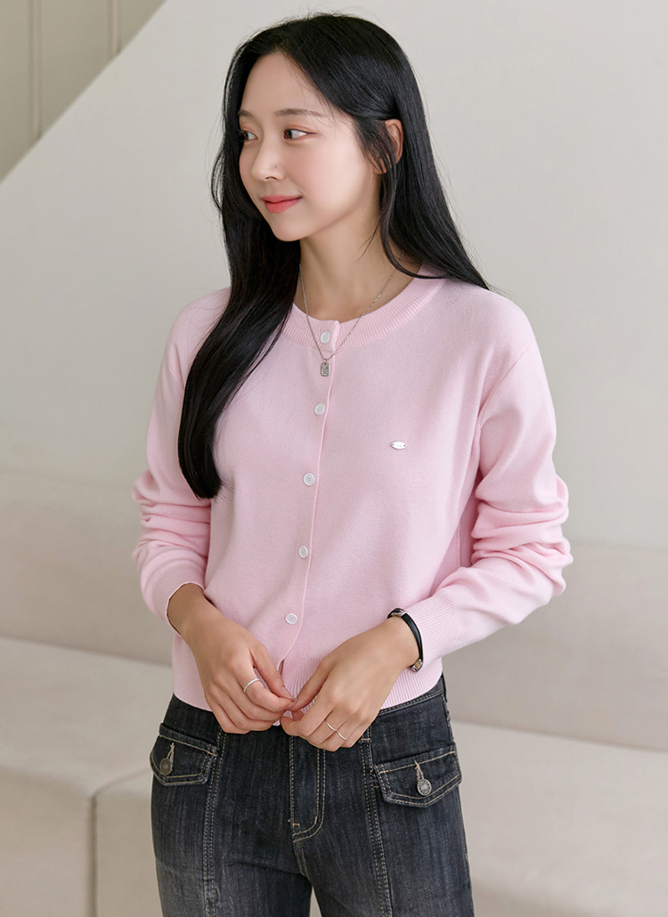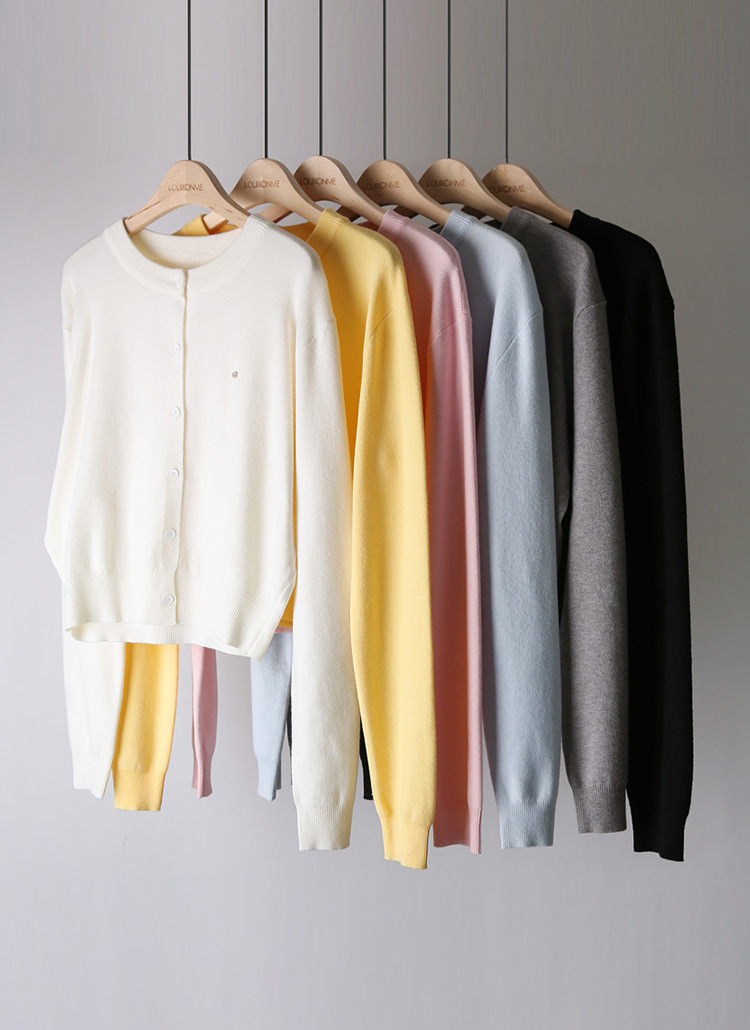 【6色展開】[THE ONME] ペンダント付き パステルカラー ラウンドネック ニットカーディガン cd38616