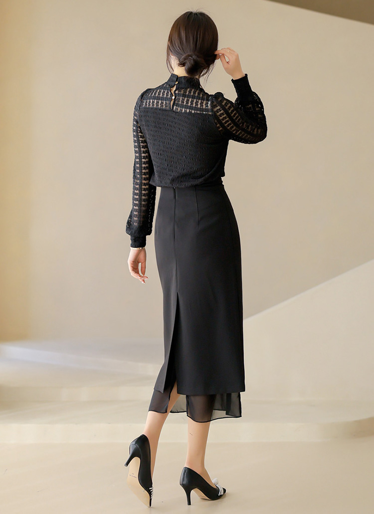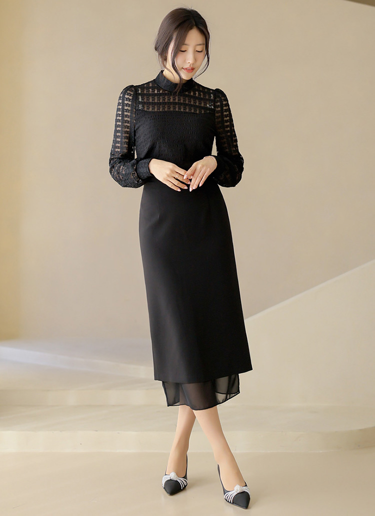 우아한 쉬폰 레이어드가 돋보이는 H라인 롱 펜슬 스커트에요 :)