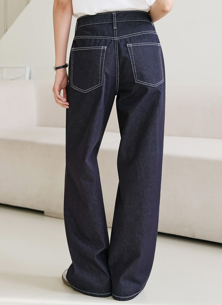 화이트 스티치 라인이 돋보이는 와이드 팬츠에요 :)