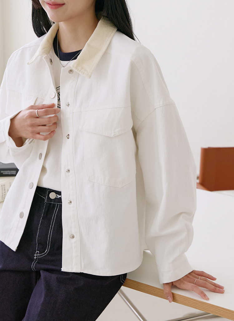 트렌디한 코듀로이 카라와 언발 디자인으로
