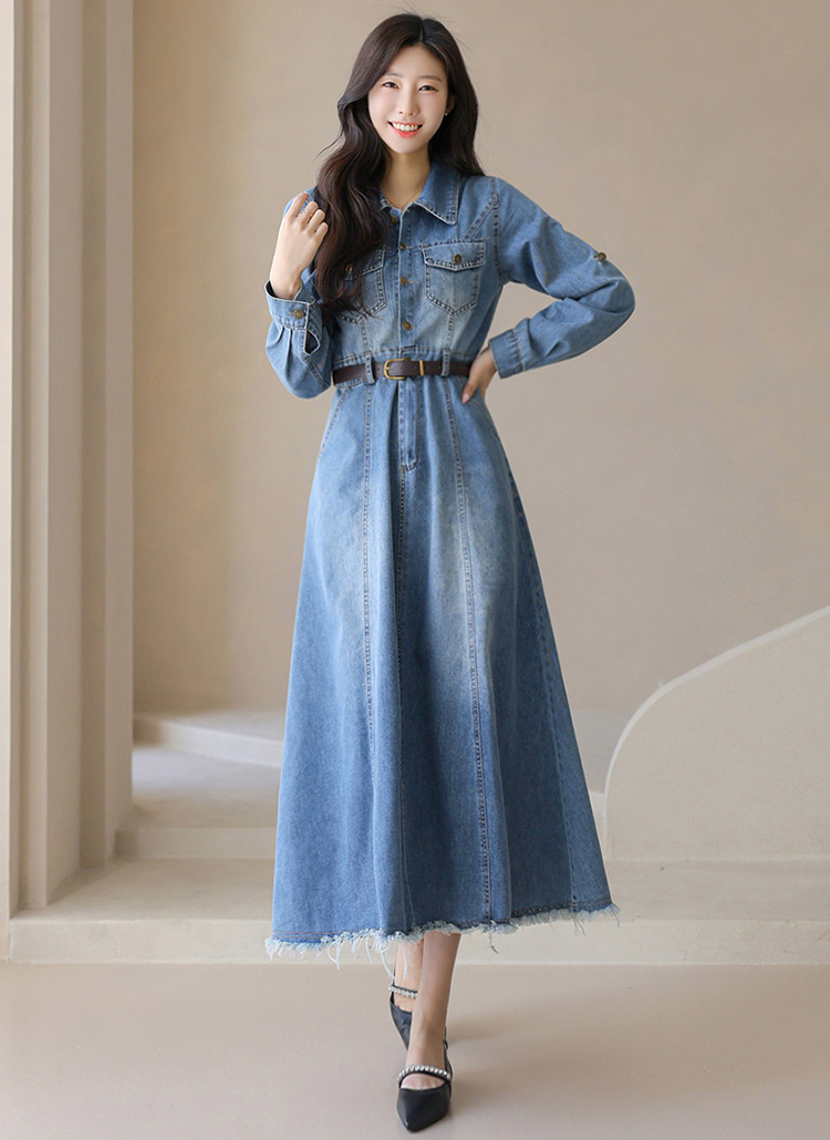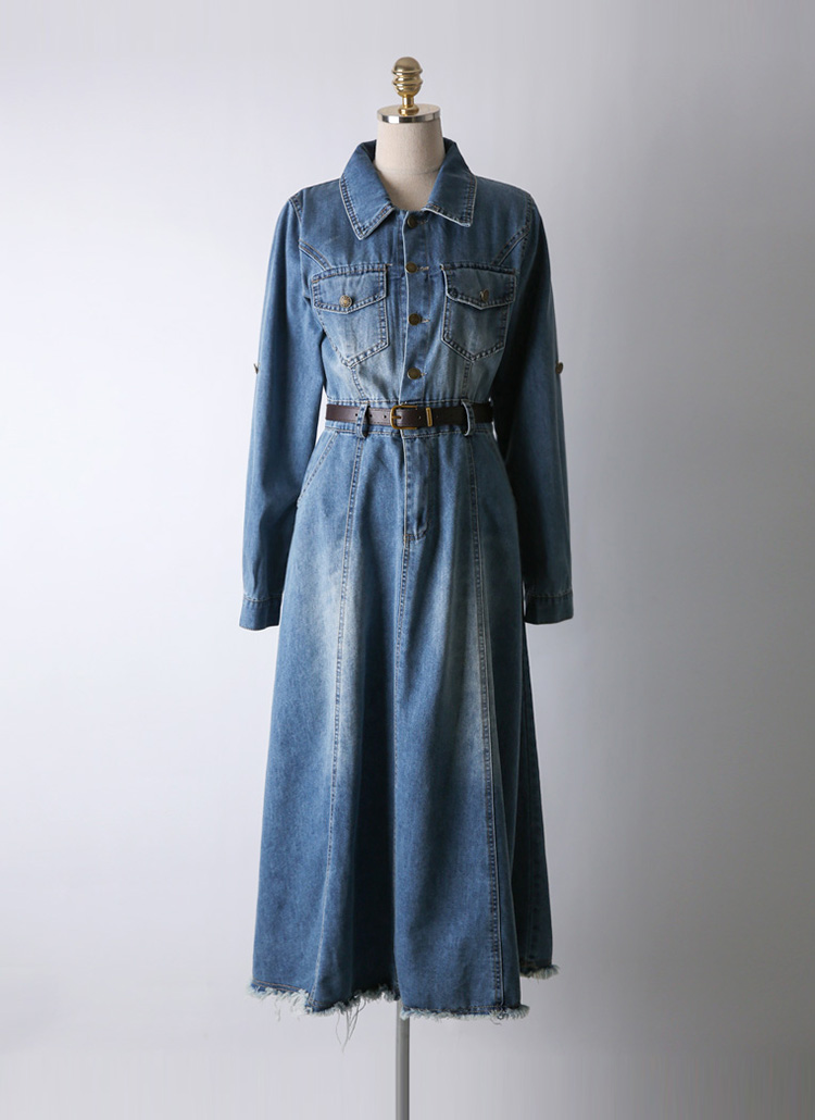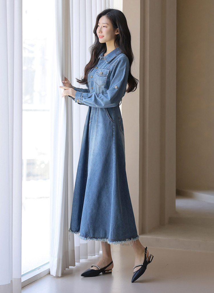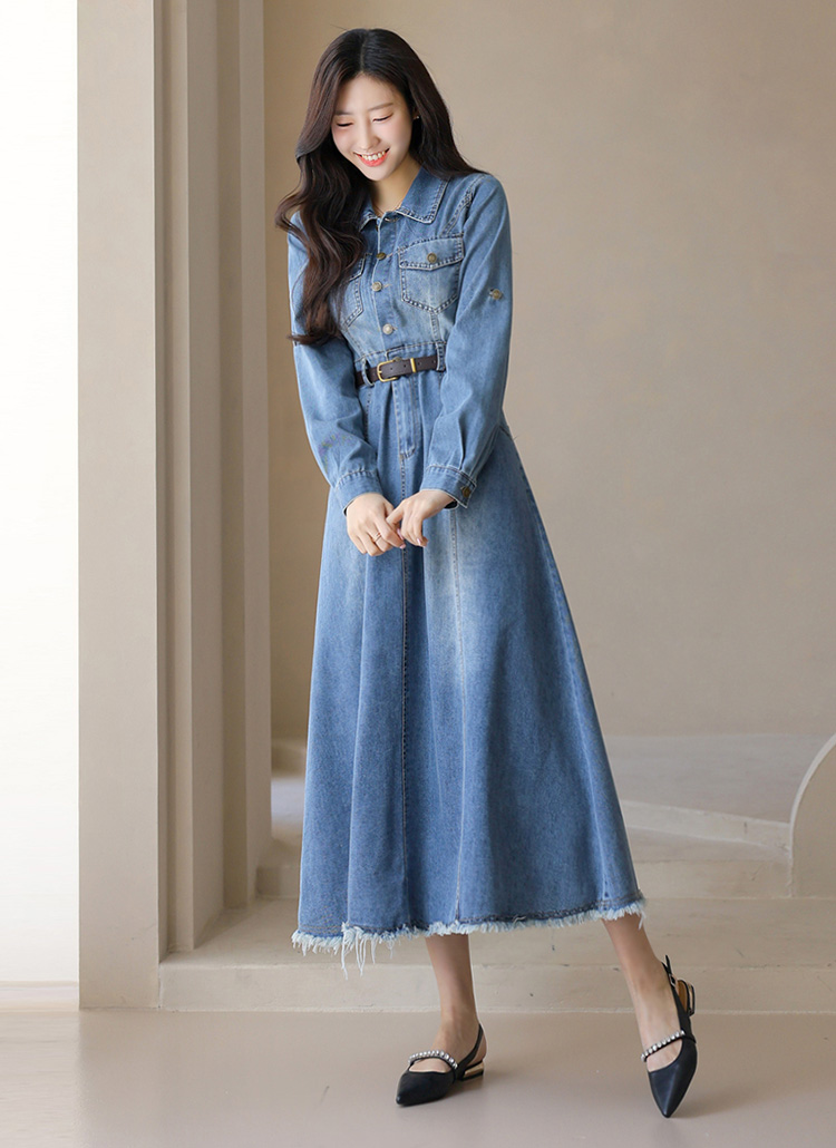 멋스러운 A라인 데님 롱 플레어 원피스에요 :)