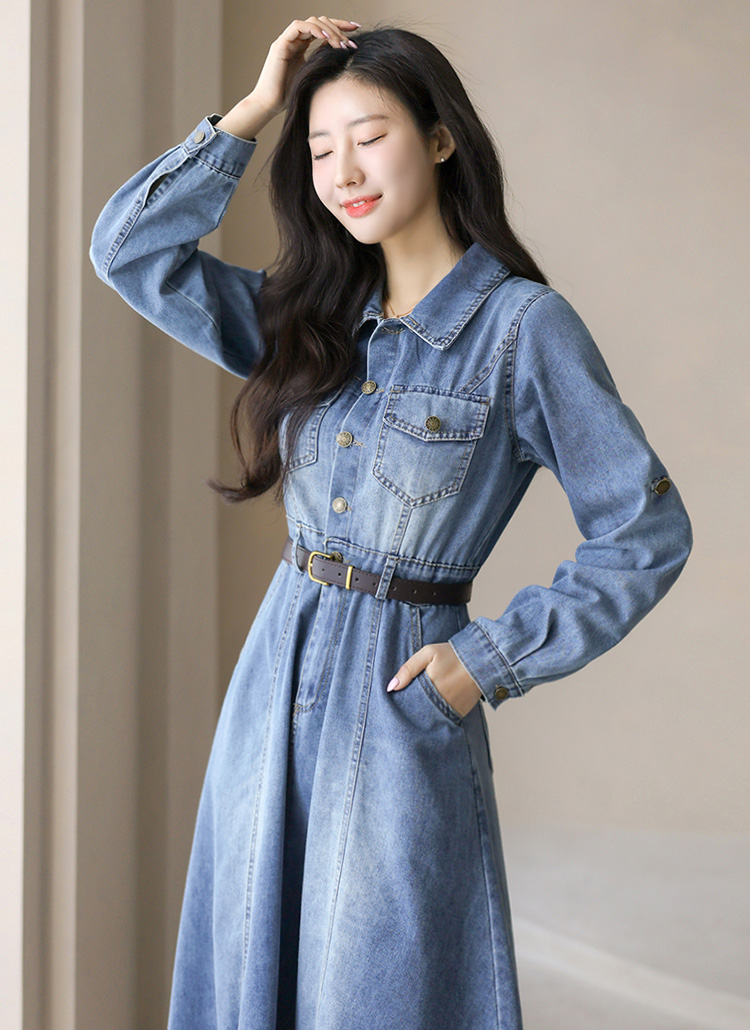 【企画特価】ベルト付きデニムシャツロングワンピース op38802