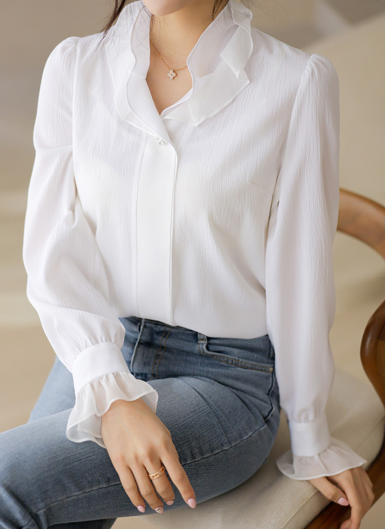 쉬폰이 레이어드되어 이중으로 연출된 러플넥이