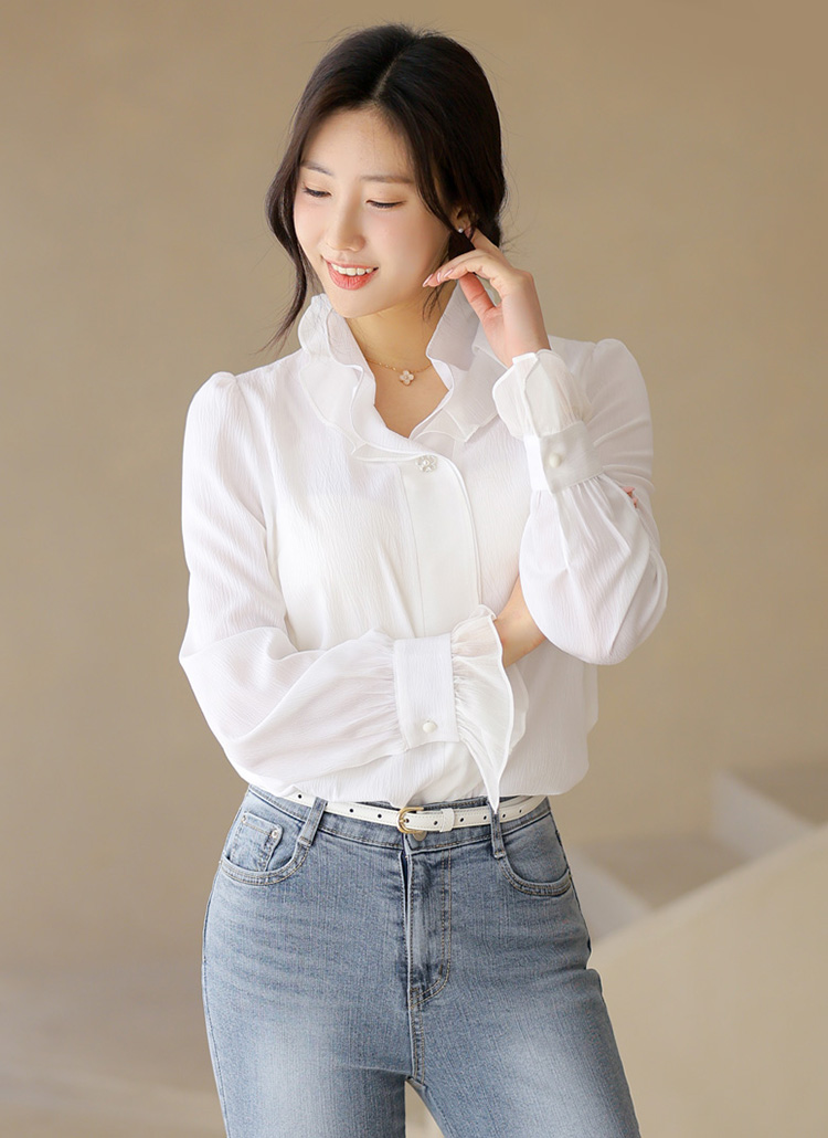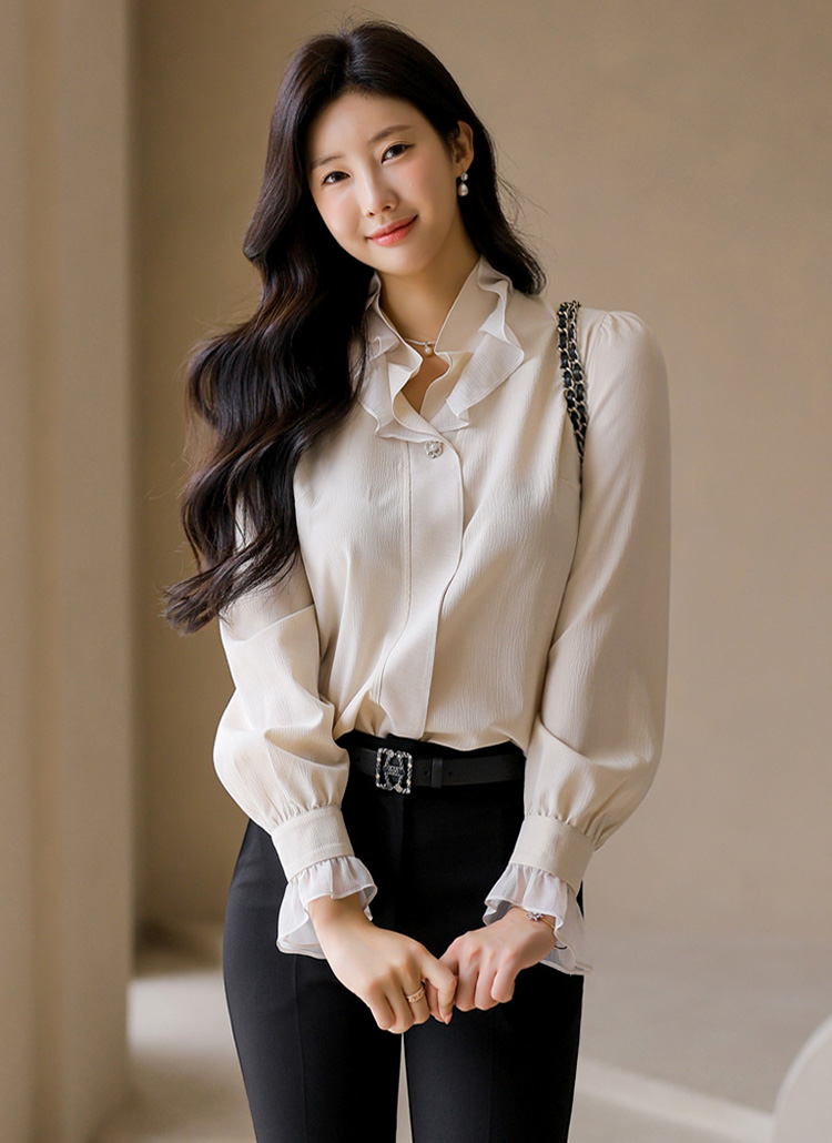 쉬폰이 레이어드되어 이중으로 연출된 러플넥이