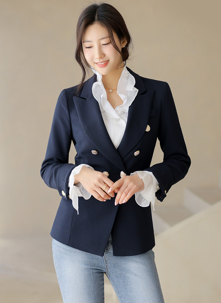 이중 러플넥으로 목선을 여리고 섬세하게 돋보여주며