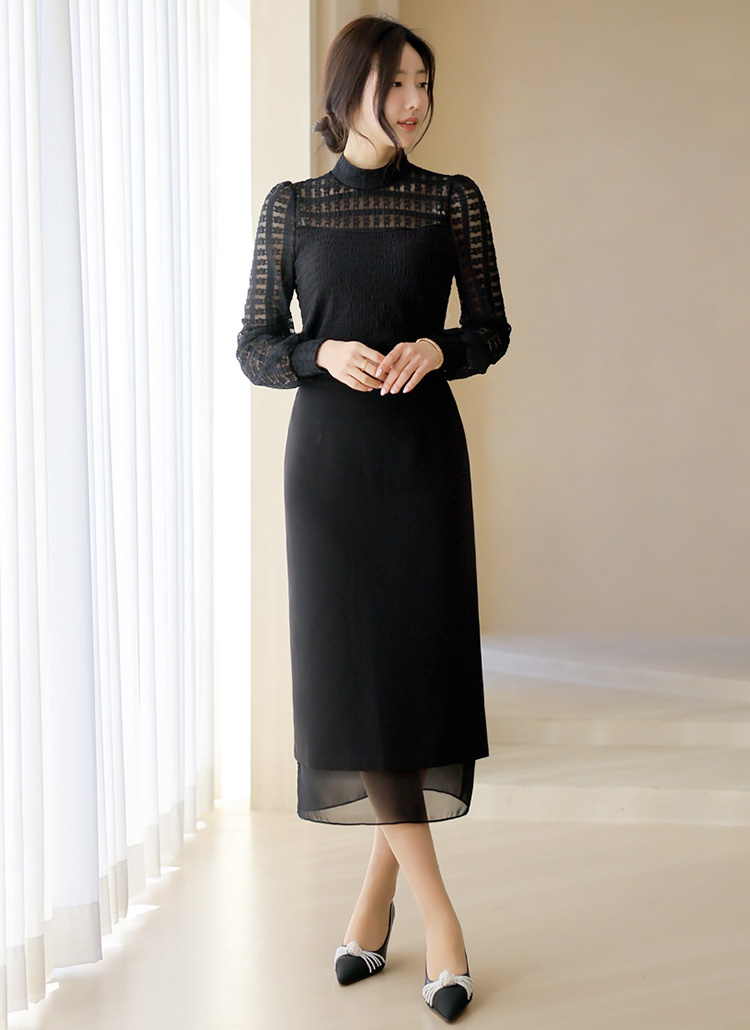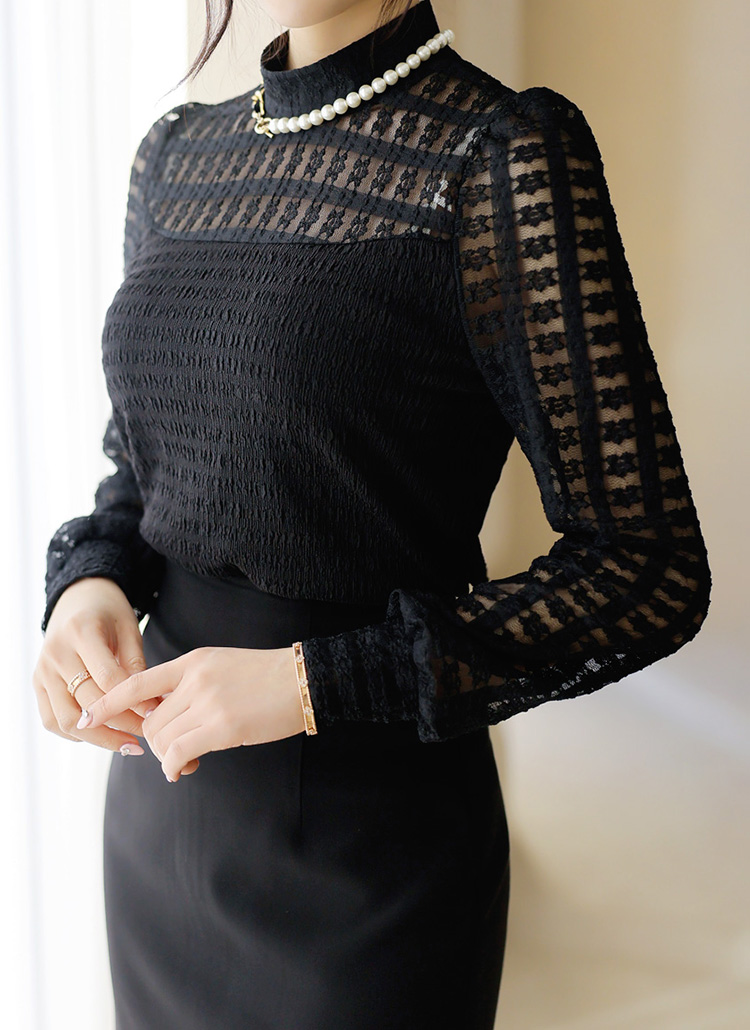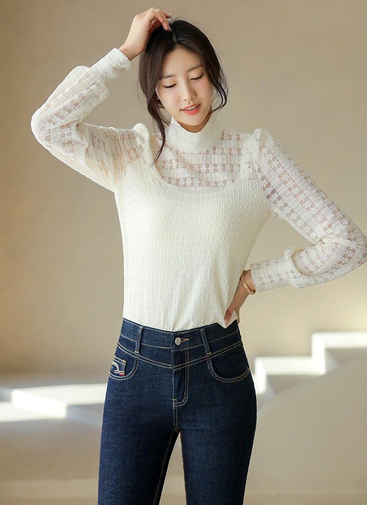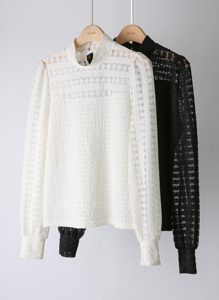 [LouisAngel] フラワーレースドッキング ハイネックジャガードブラウス bl38910