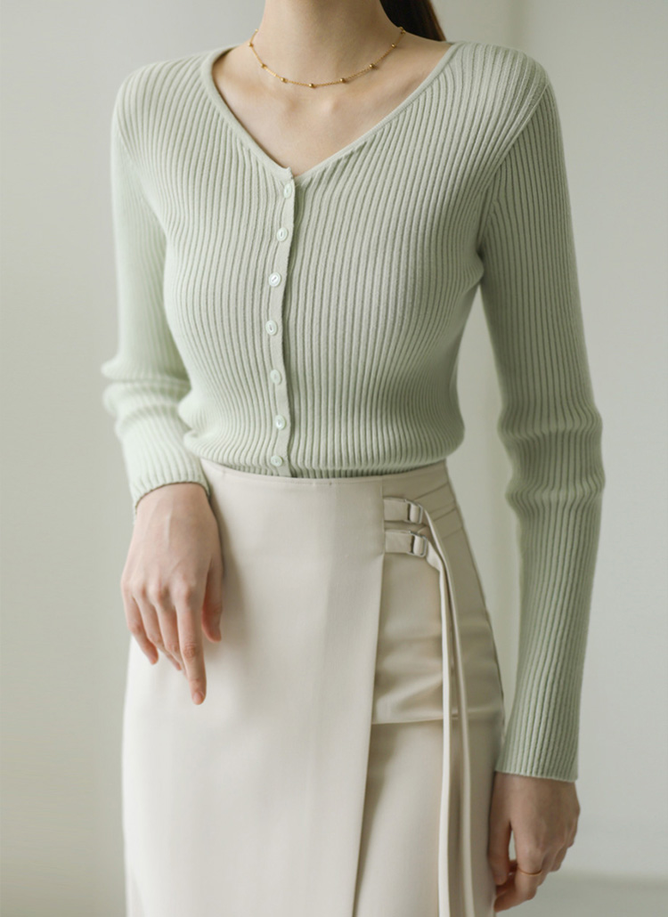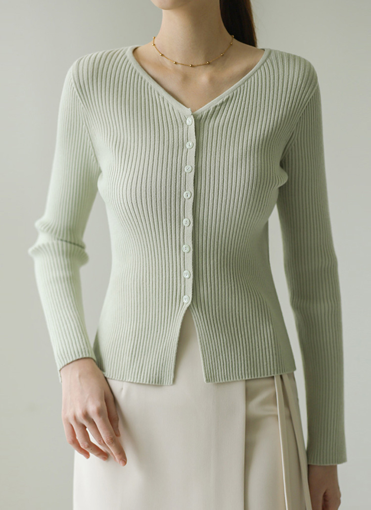 【4色展開】裾スリット Vネックリブニットカーディガン cd38937