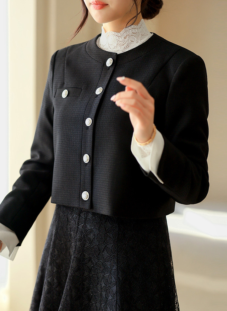 세련된 노카라 디자인과 세미 크롭 기장으로