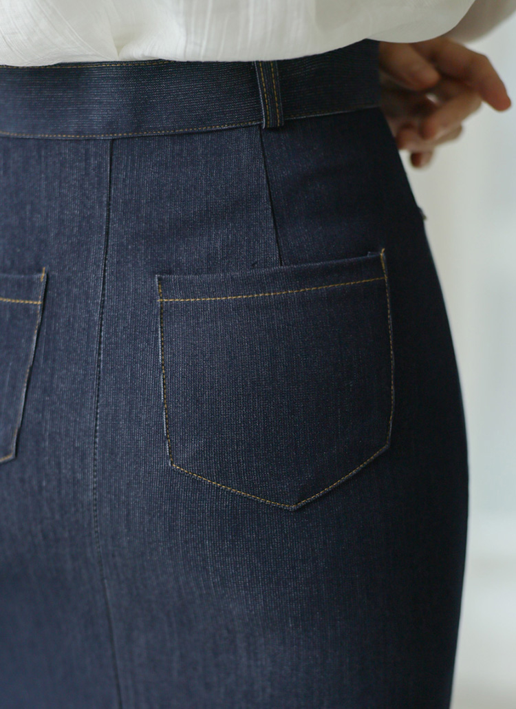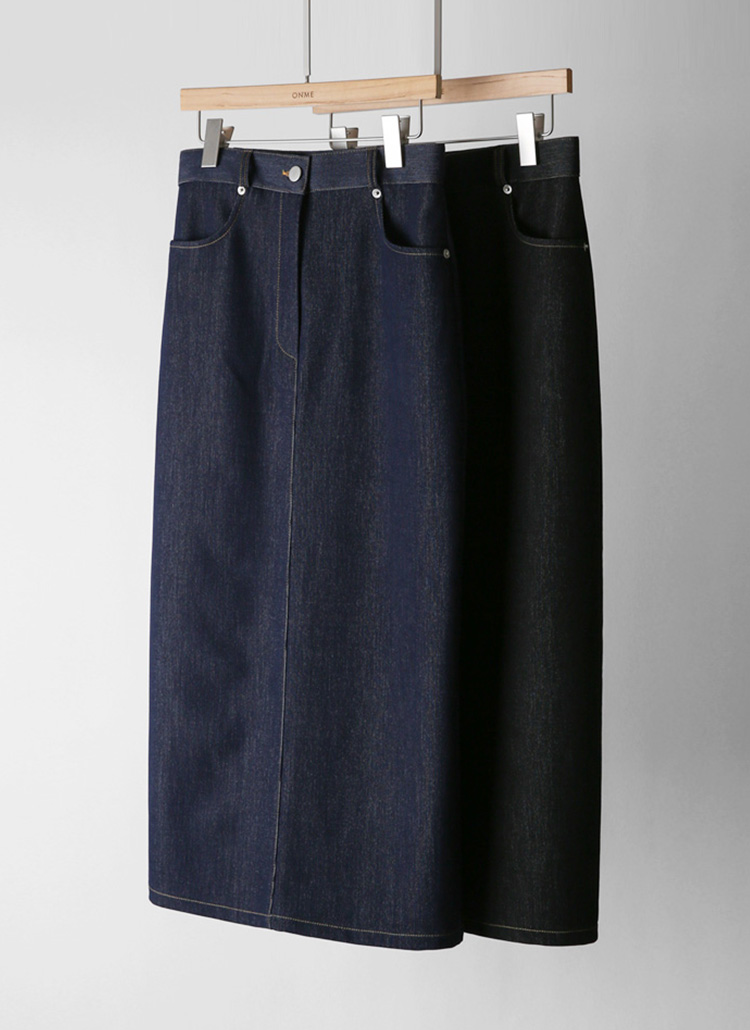 깔끔하고 캐주얼한 무드의 데님 H라인 롱 스커트!