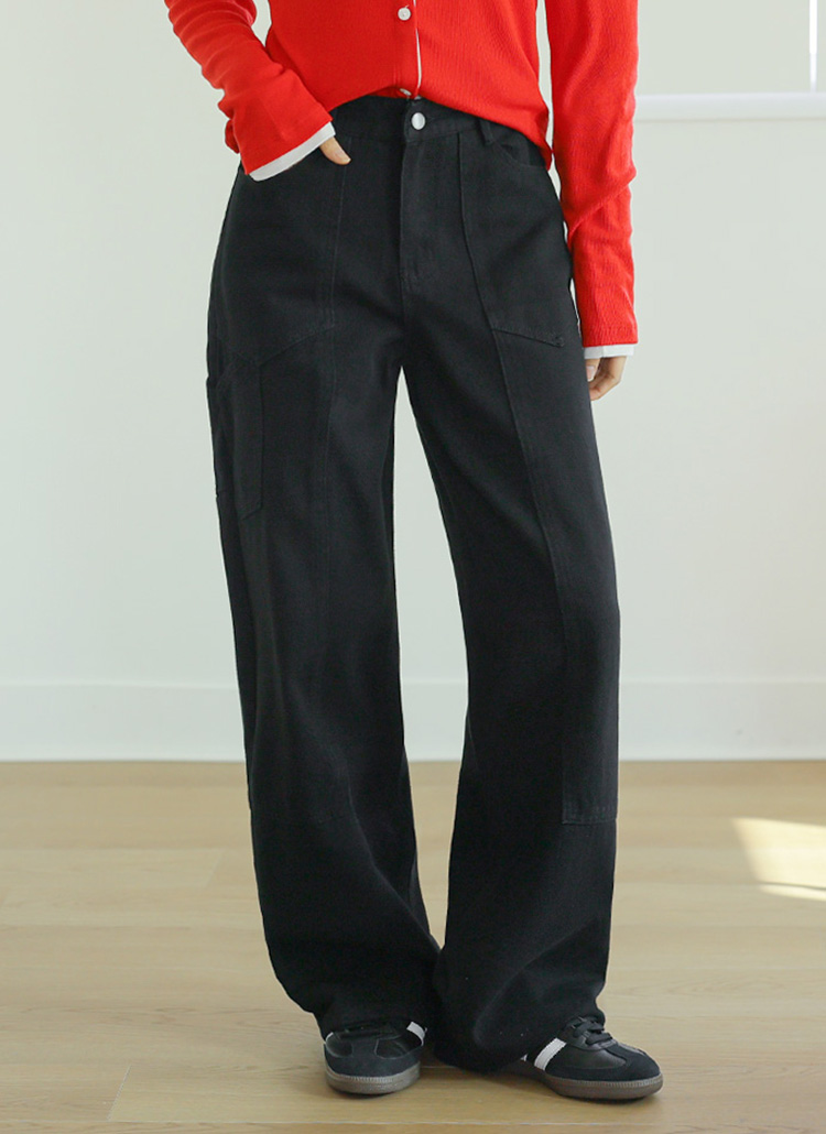 [THE ONME] サイド切り替えビックポケットワイドコットンパンツpt39009