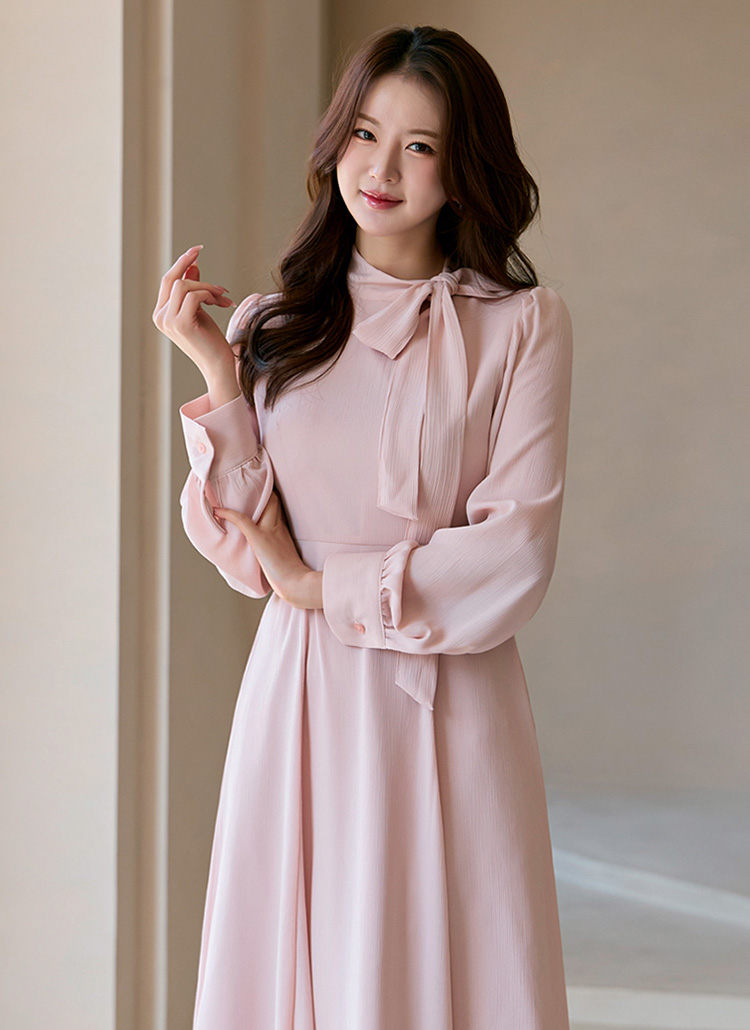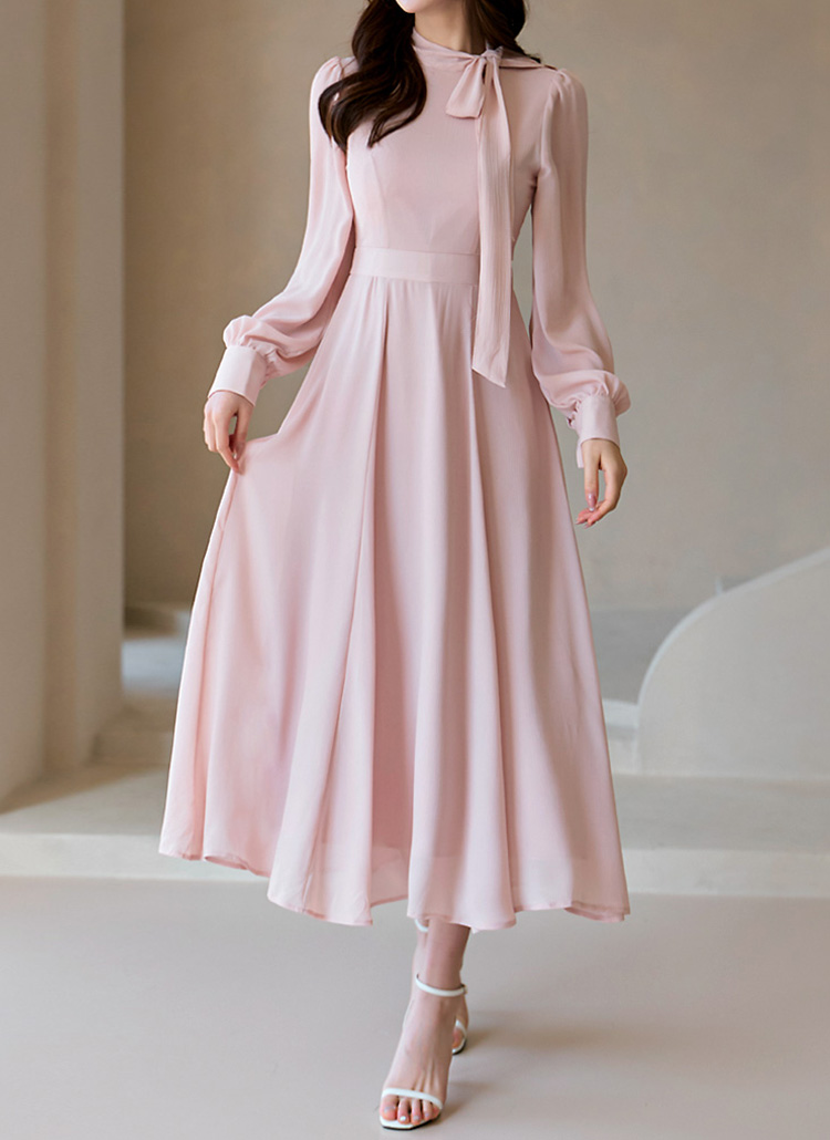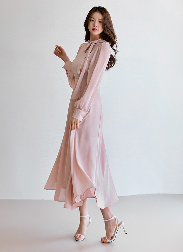 여리고 우아한 페미닌 무드를 선사하는 플레어 롱 쉬폰 원피스에요