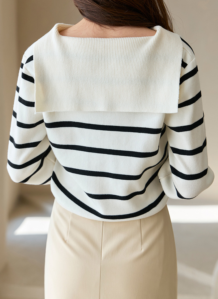 【ボーダー&無地】セラーカラーボーダーニットカーディガン cd39054