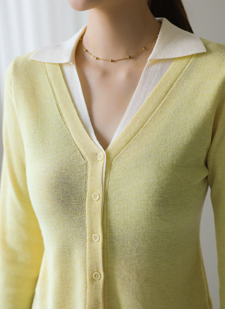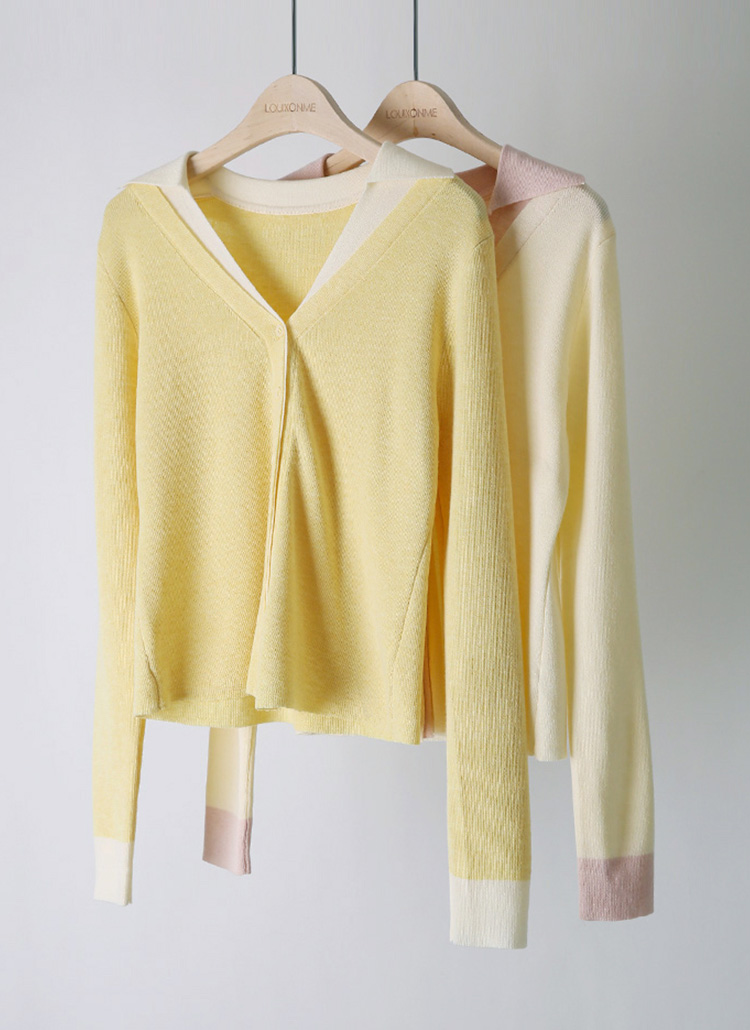 オープンカラーレイヤード配色ニットカーディガン cd39060