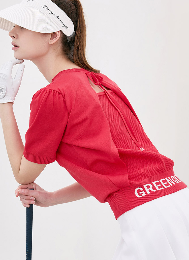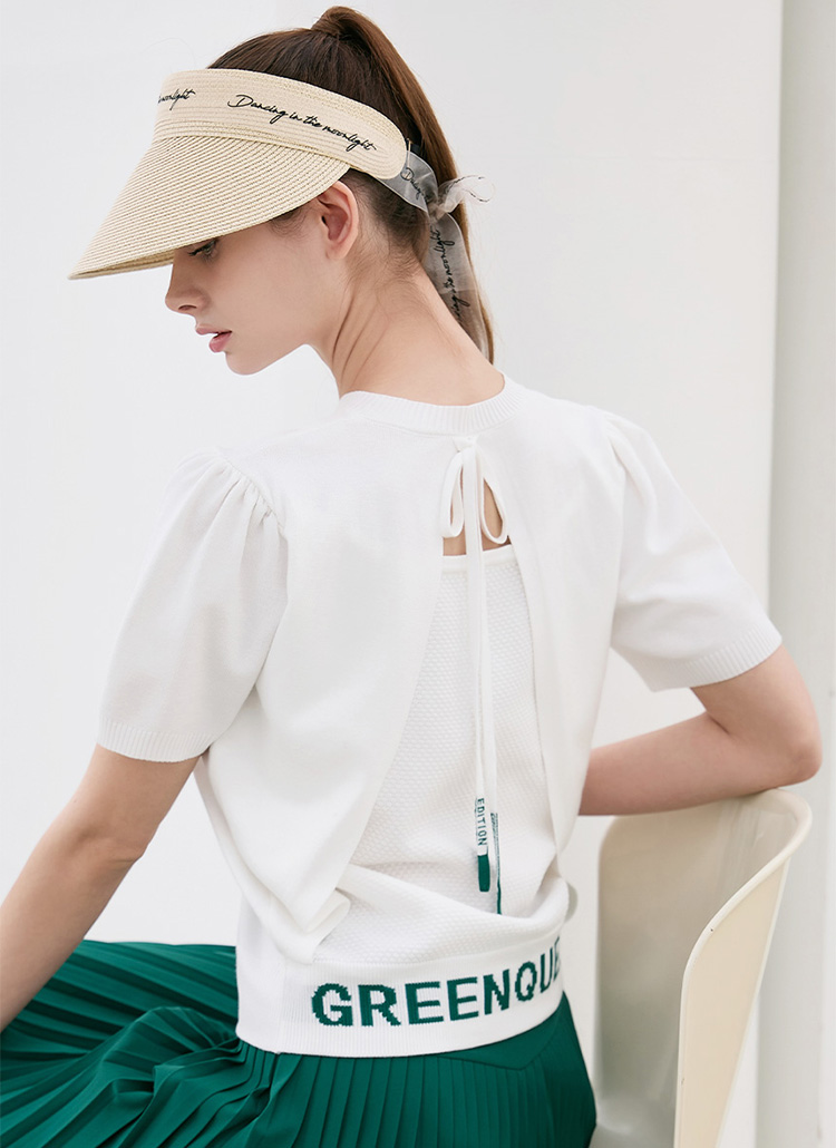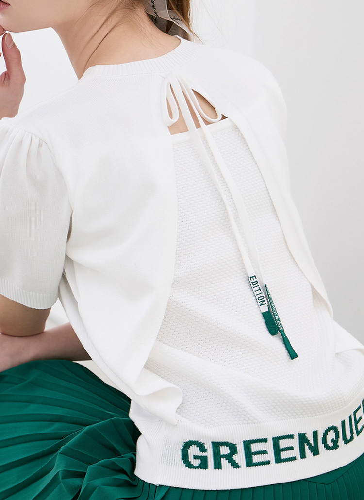 [QoG] バックスリットリボン付きレタリング半袖ニット nt39087