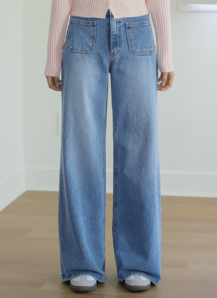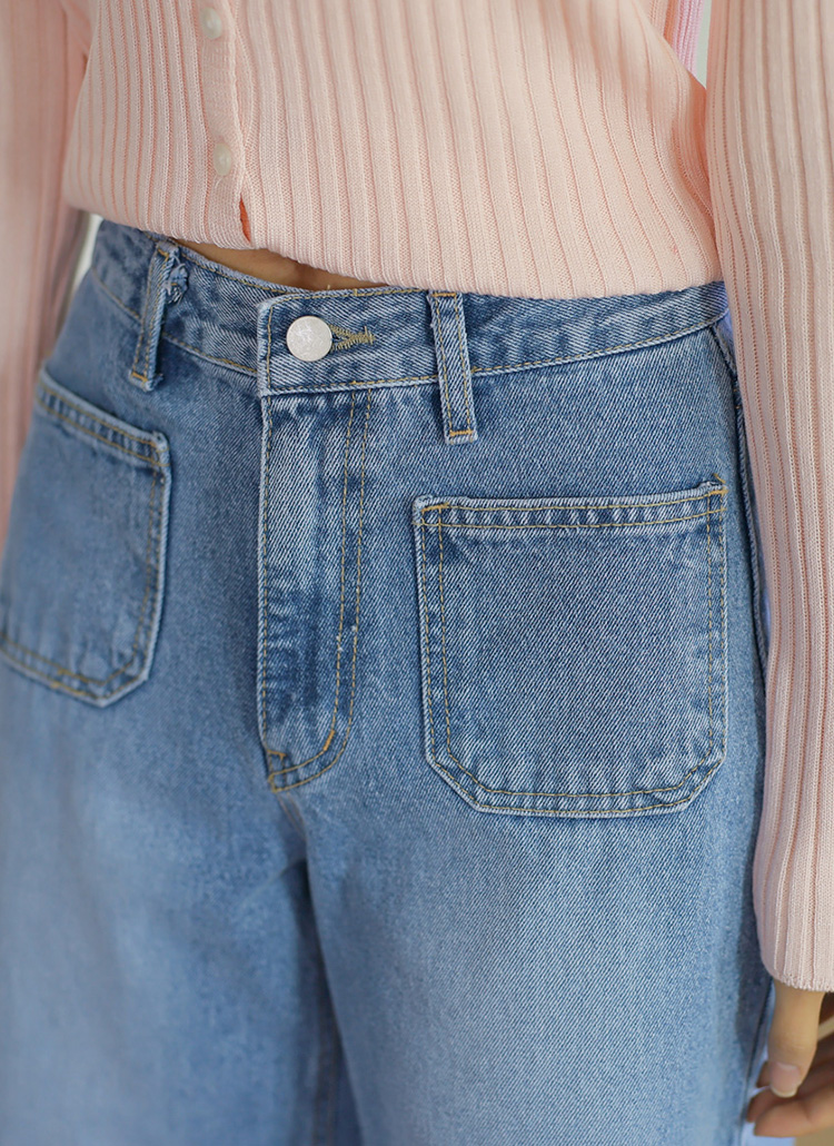 앞포켓으로 세련된 포인트를 준 세미와이드 핏의 데님 팬츠에요 :)