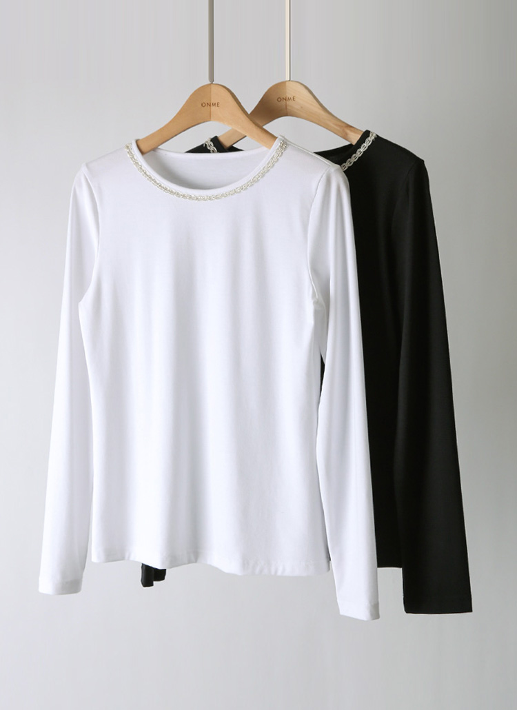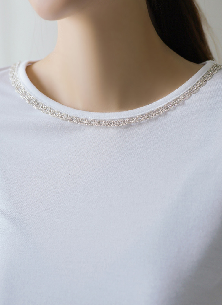 깔끔한 베이직 디자인에 레이스 네크라인이 포인트가 되어
