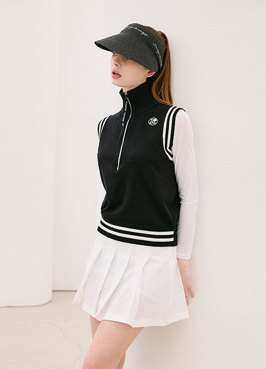 [QoG] 配色ラインハーフジップニットベスト vt39147
