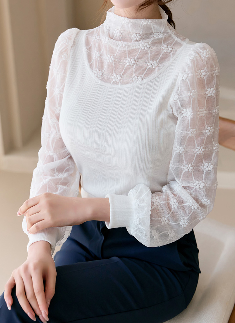 [LouisAngel] フラワーチュールレースドッキングリブプルオーバー bl39159