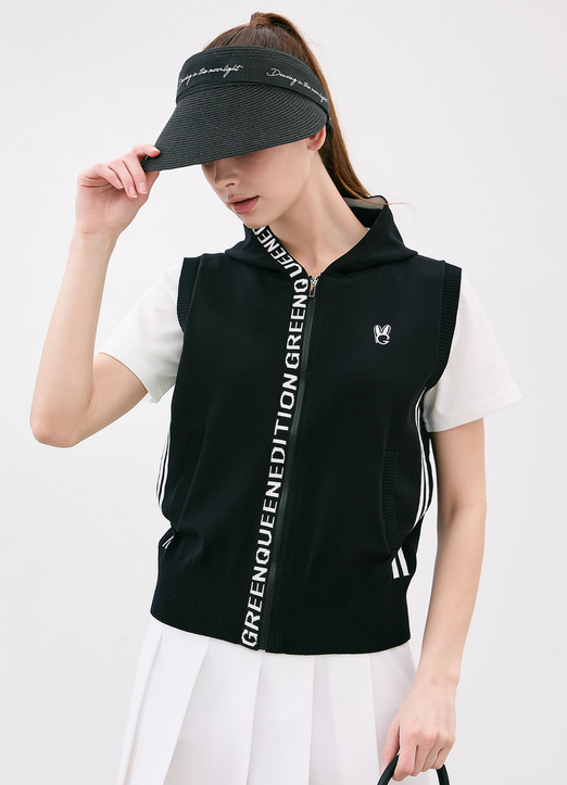 [QoG] レタリングバイカラーフードニットベスト vt39183