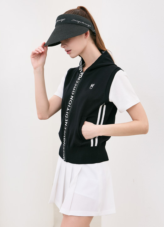 [QoG] レタリングバイカラーフードニットベスト vt39183